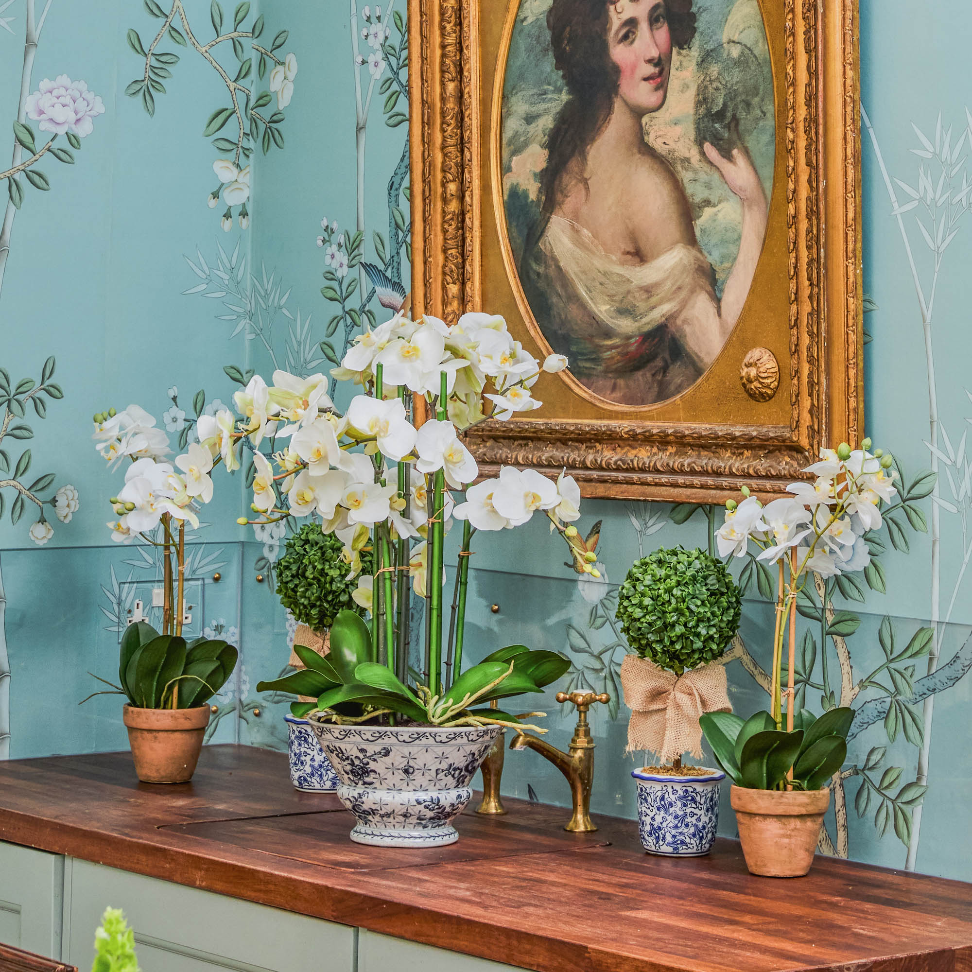 Our Double Stem Potted Faux Orchid is an elegant addition to your decor. Its lifelike blooms and flourishing leaves offer natural beauty without any upkeeping required. Ideal for adding a natural touch to your side tables or mantlepieces with its timeless appeal.