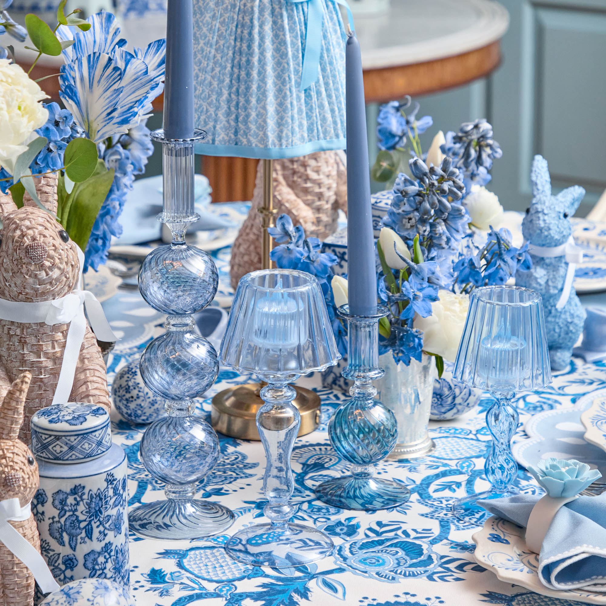 Blue Glass Lantern Tea Light Holder Set