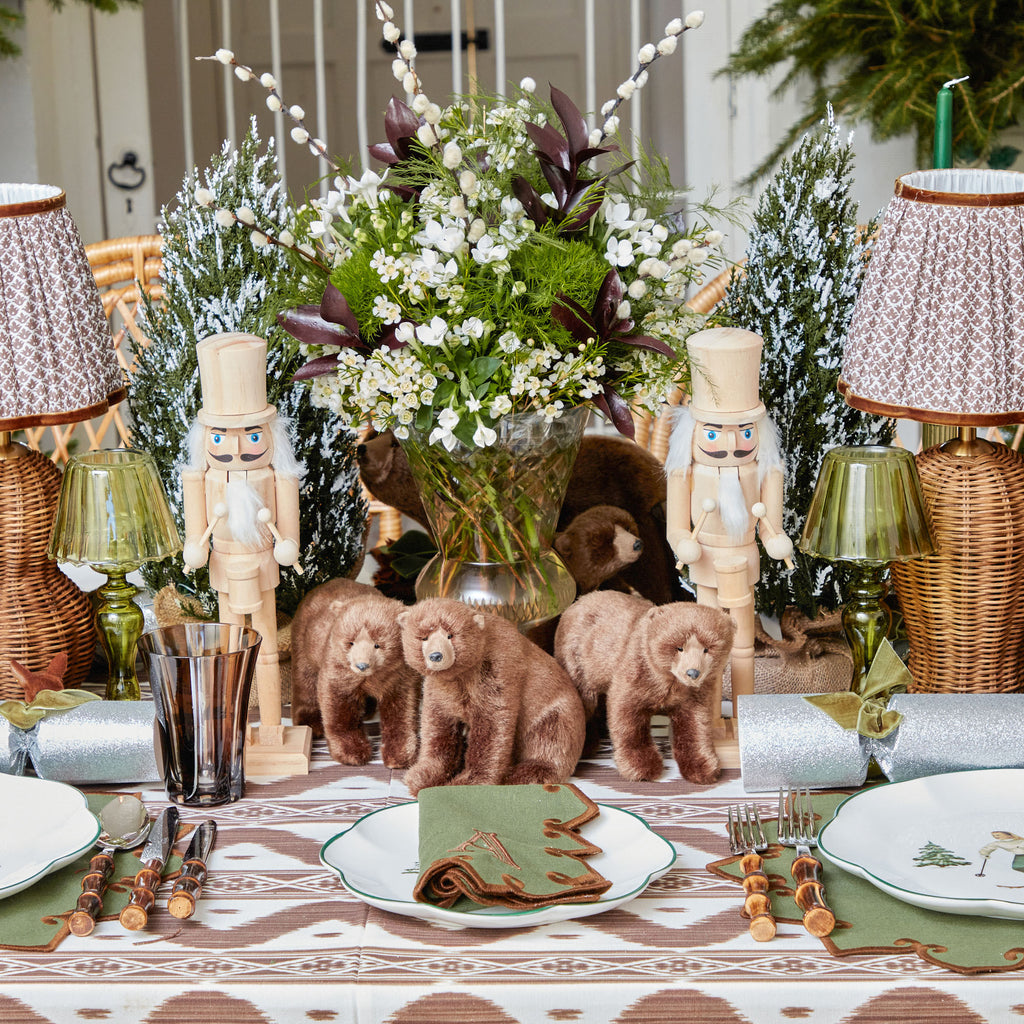 Pair them with our Rattan Reindeer, Chocolate Ikat Tablecloth & Alathea Caramel Linens.