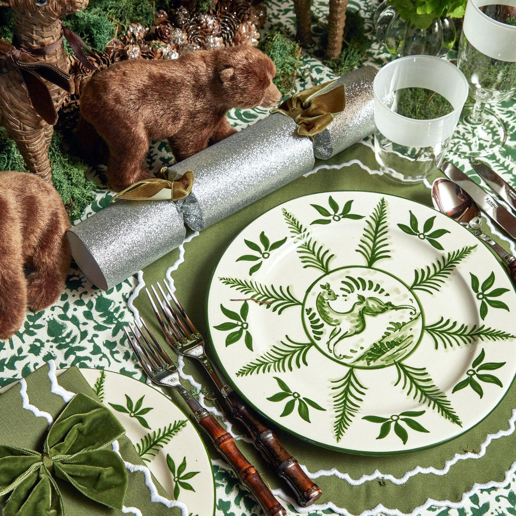 Make the most of Thanksgiving or Christmas with our beautiful silver glitter Crackers, lovingly hand-tied with luxurious olive green velvet bows. Adding a special touch to your table, these crackers are filled with the usual festive trinkets - a paper party hat, a joke and an assorted small gift.