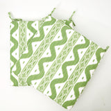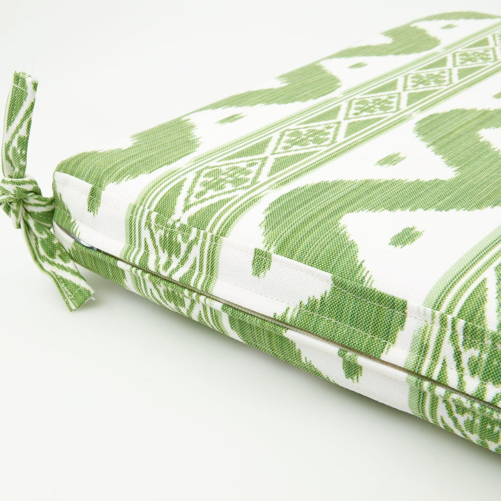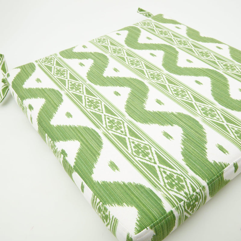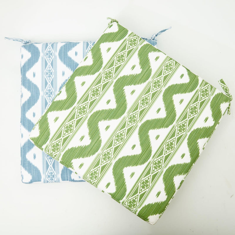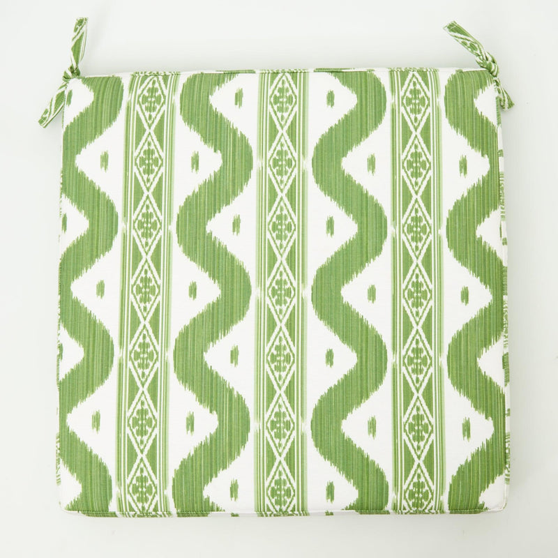 This pretty square seat pad cushion features our exclusive Green Ikat fabric.