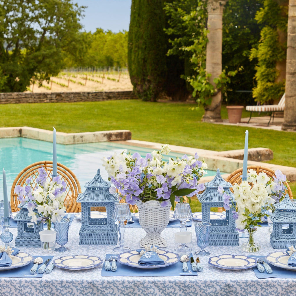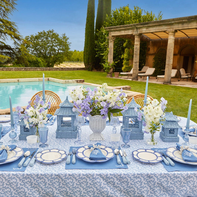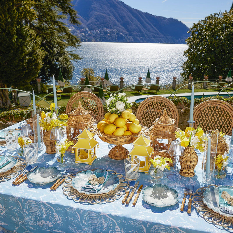 Inspired by the blue skies of Lake Como, the Set includes delicately etched glass Candle Holders and soft Blue Candles.