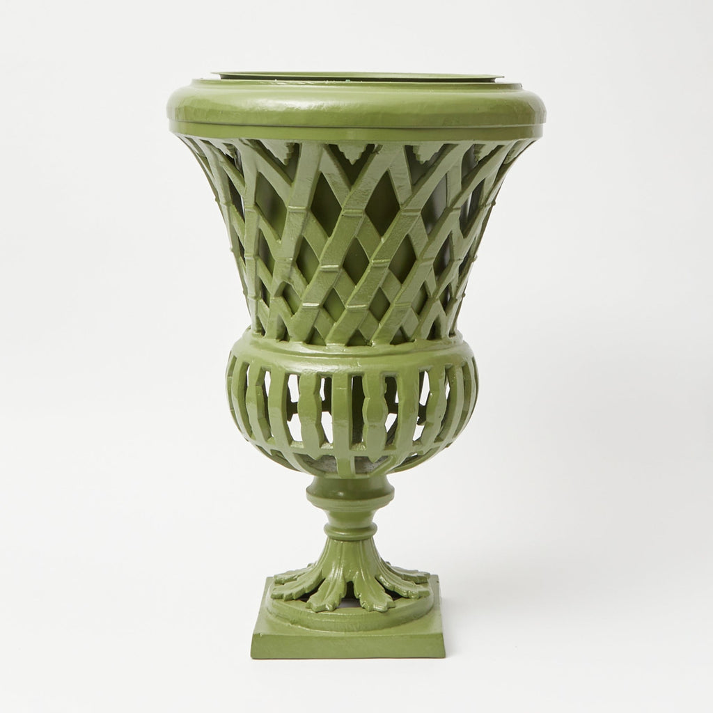 This exquisite Green Urn with stylish Lattice design is a stand out piece bringing the joy of fresh flowers to any room.