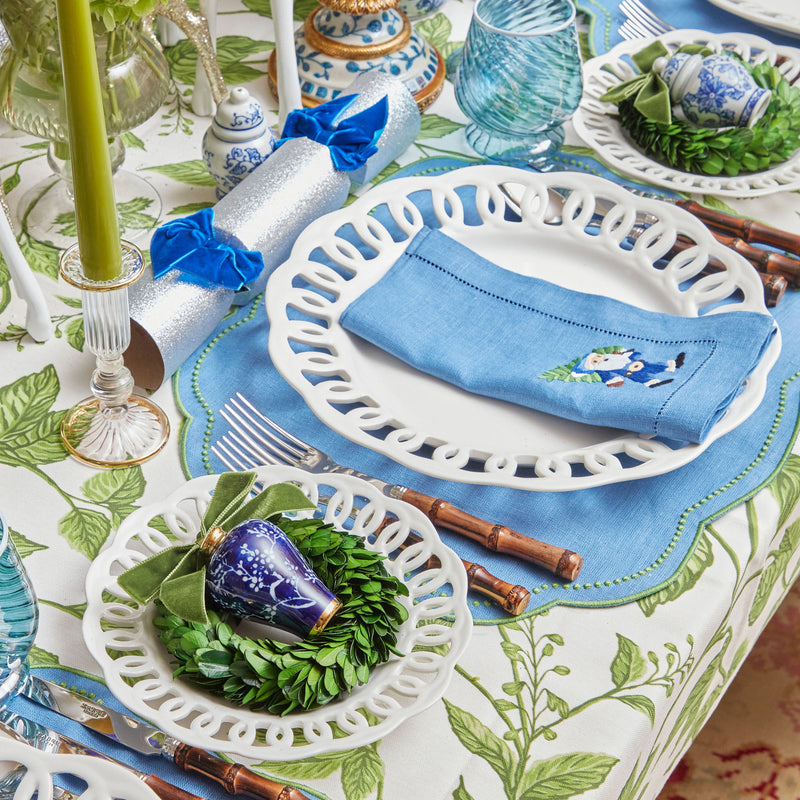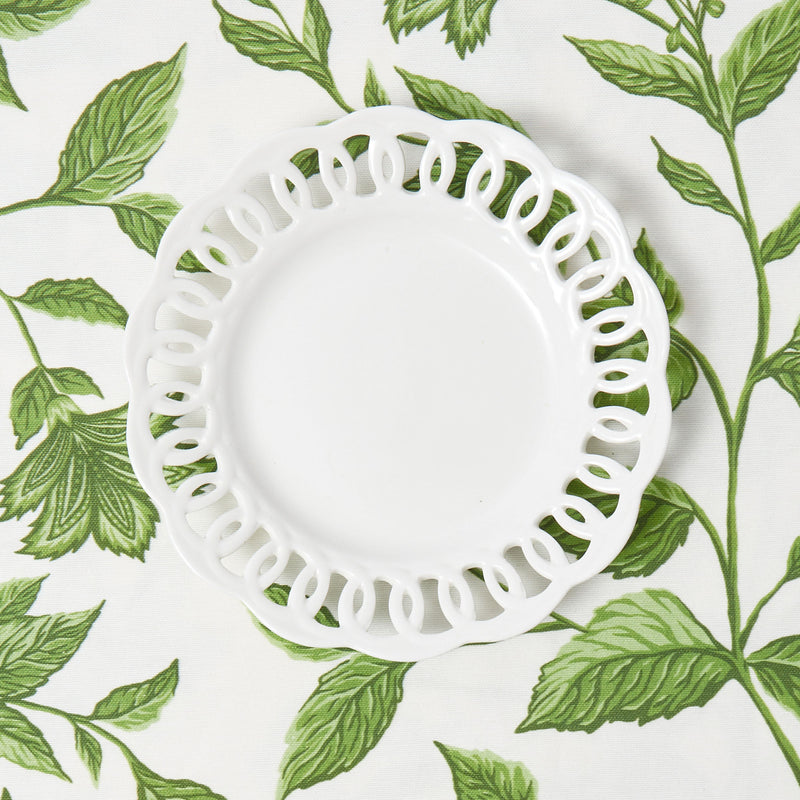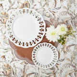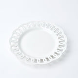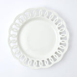Our elegant White Lace Dinner Plate adds a refined touch to your everyday. It is large enough to be used both as a dinner plate or charger. Its elegant lattice rim will elevate any table setting and can be used throughout the year.