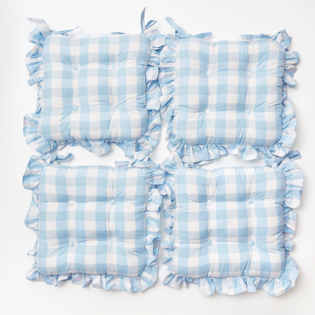 Blue Gingham Ruffle Seat Pad Cushion (Set of 4)