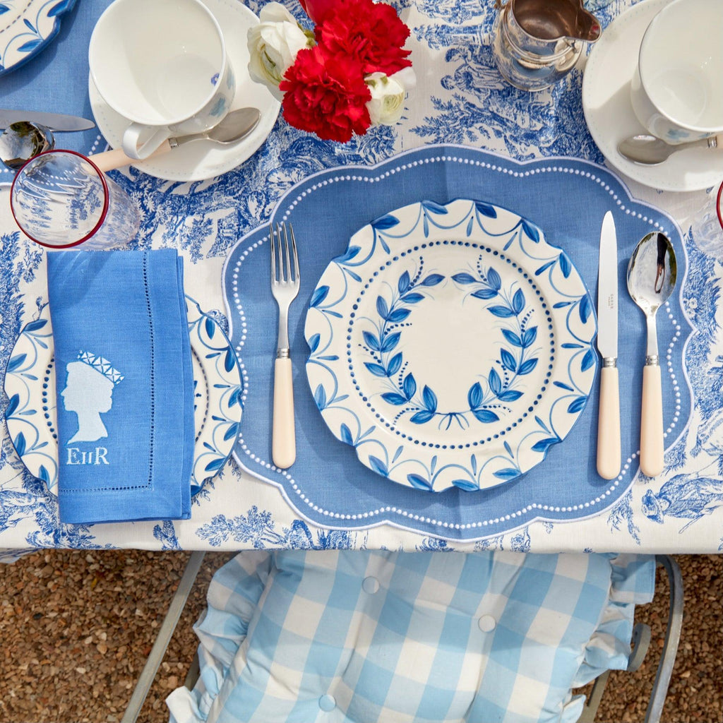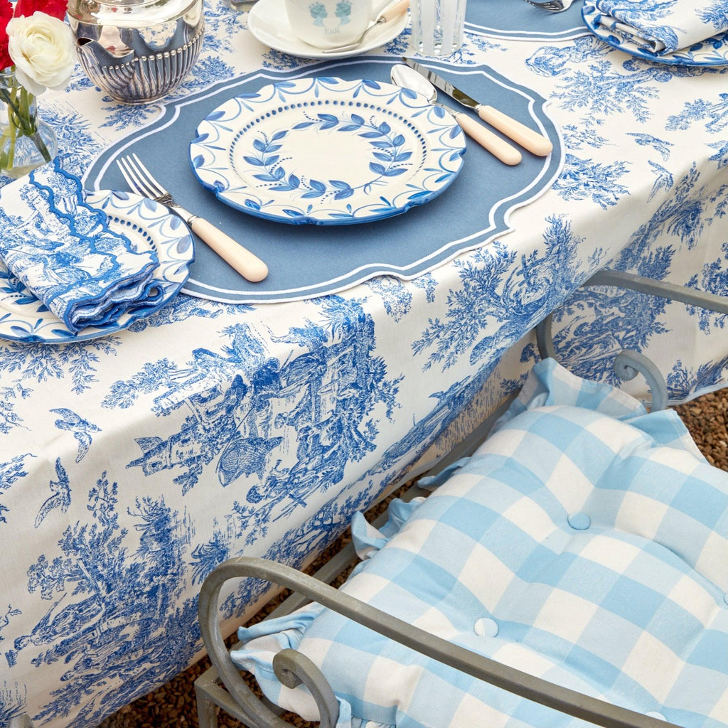 These delightful Blue Gingham Seat Cushion with their frilled edge, buttons and ties are one of Alice and Serena's favourite pieces.
