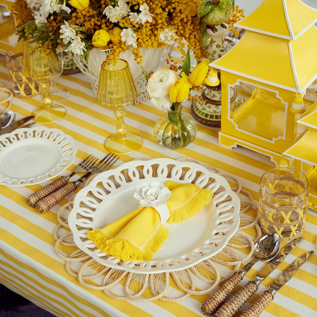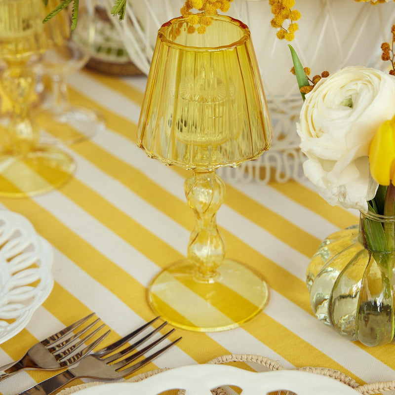 Our Yellow Glass Lantern Tea Light Holders are a stunning addition that will lighten your table in more than one way. With their elegant shape made of yellow glass, they enhance any surface they are set upon.