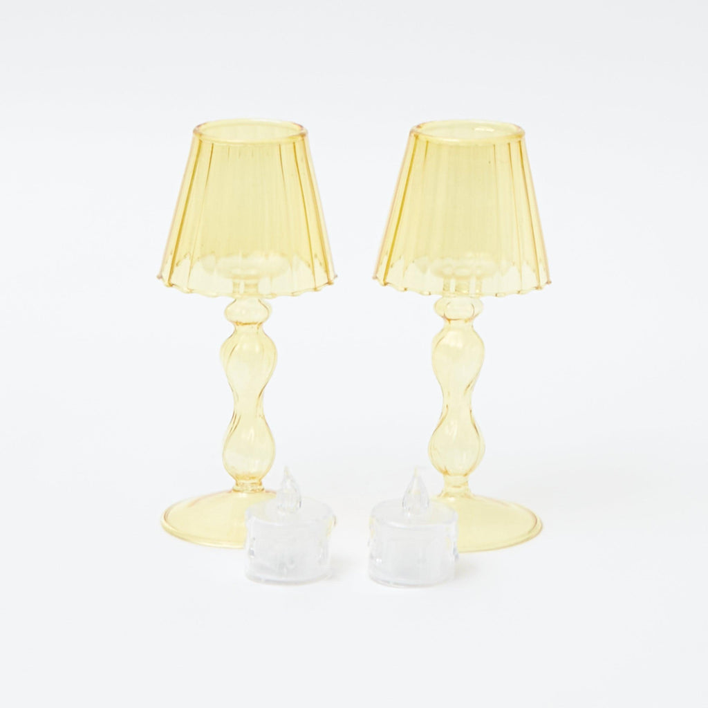 Yellow Glass Lantern Tea Light Holder (Pair) - 18cm