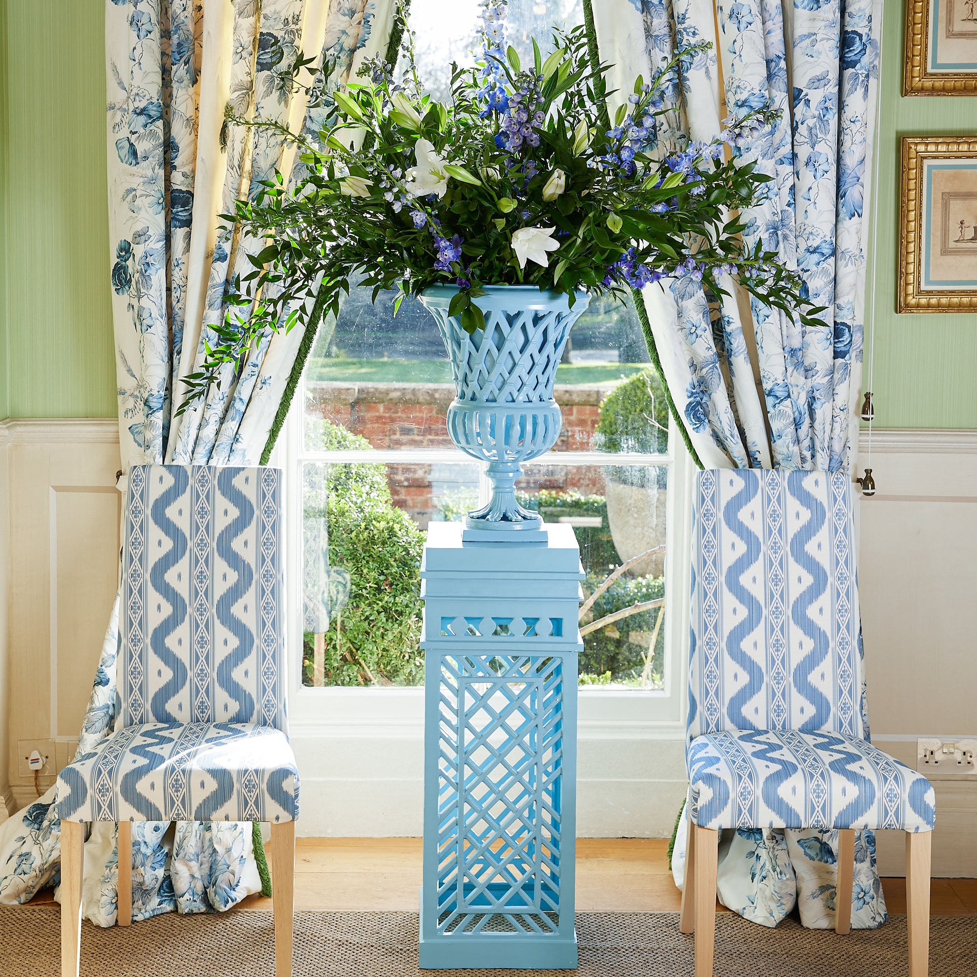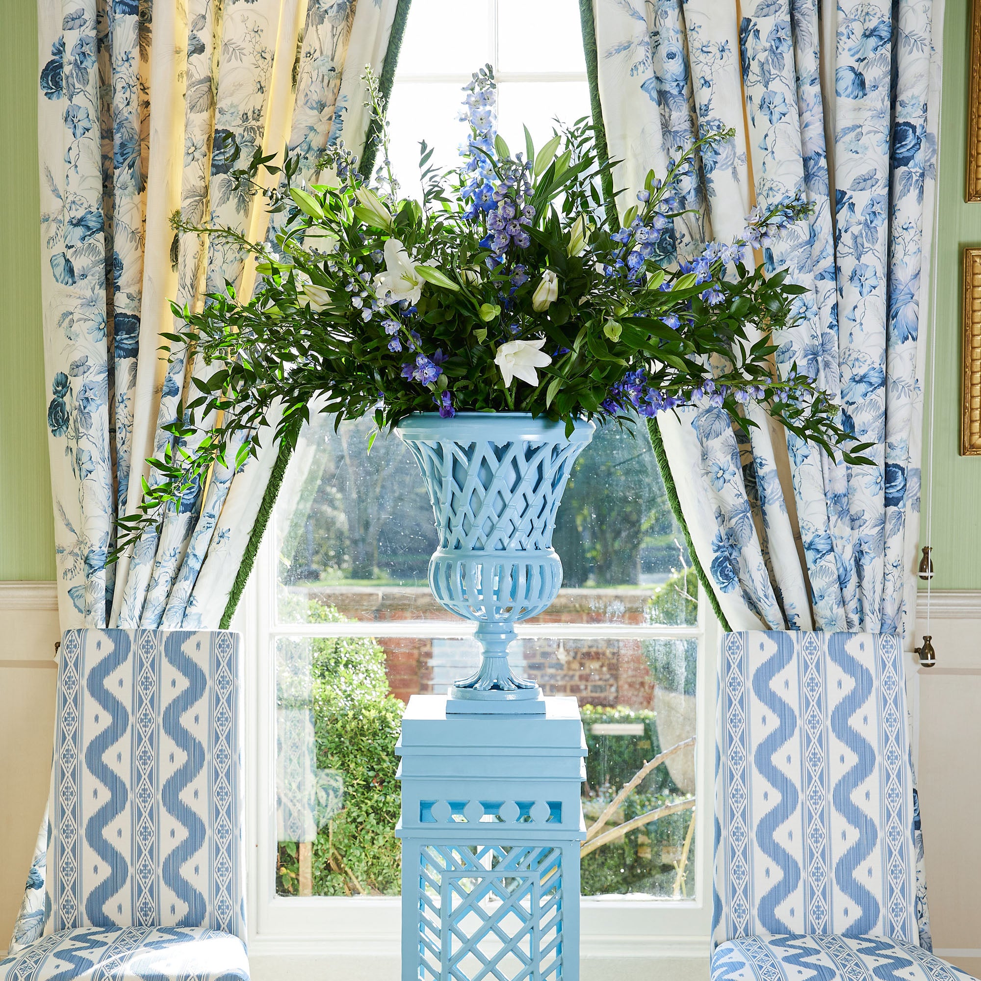 Our pretty Adelaide Blue Lattice Urn and Pedestal is a chic addition to your home.