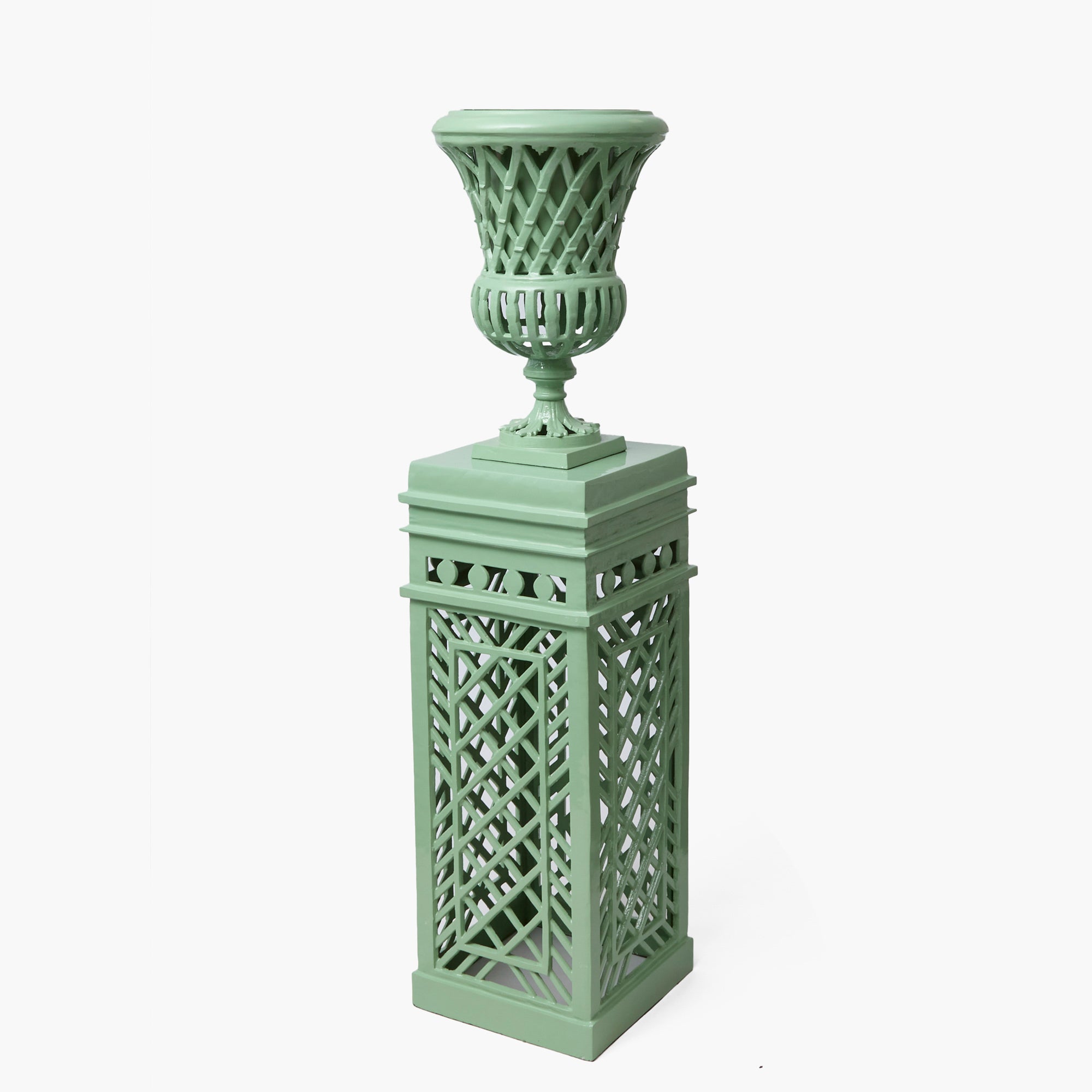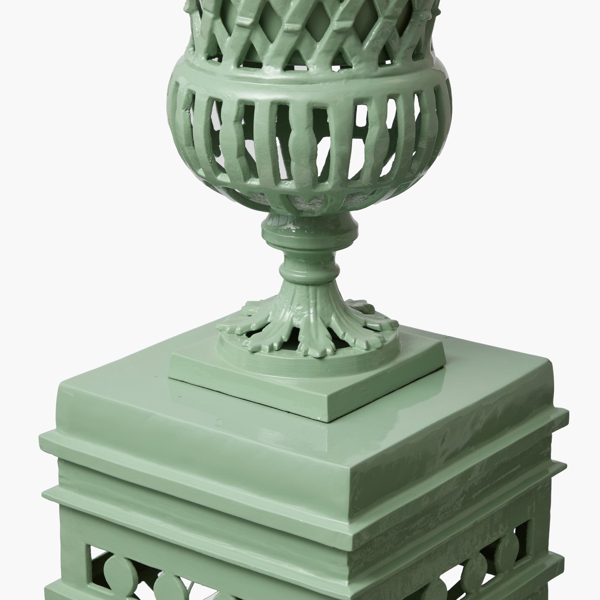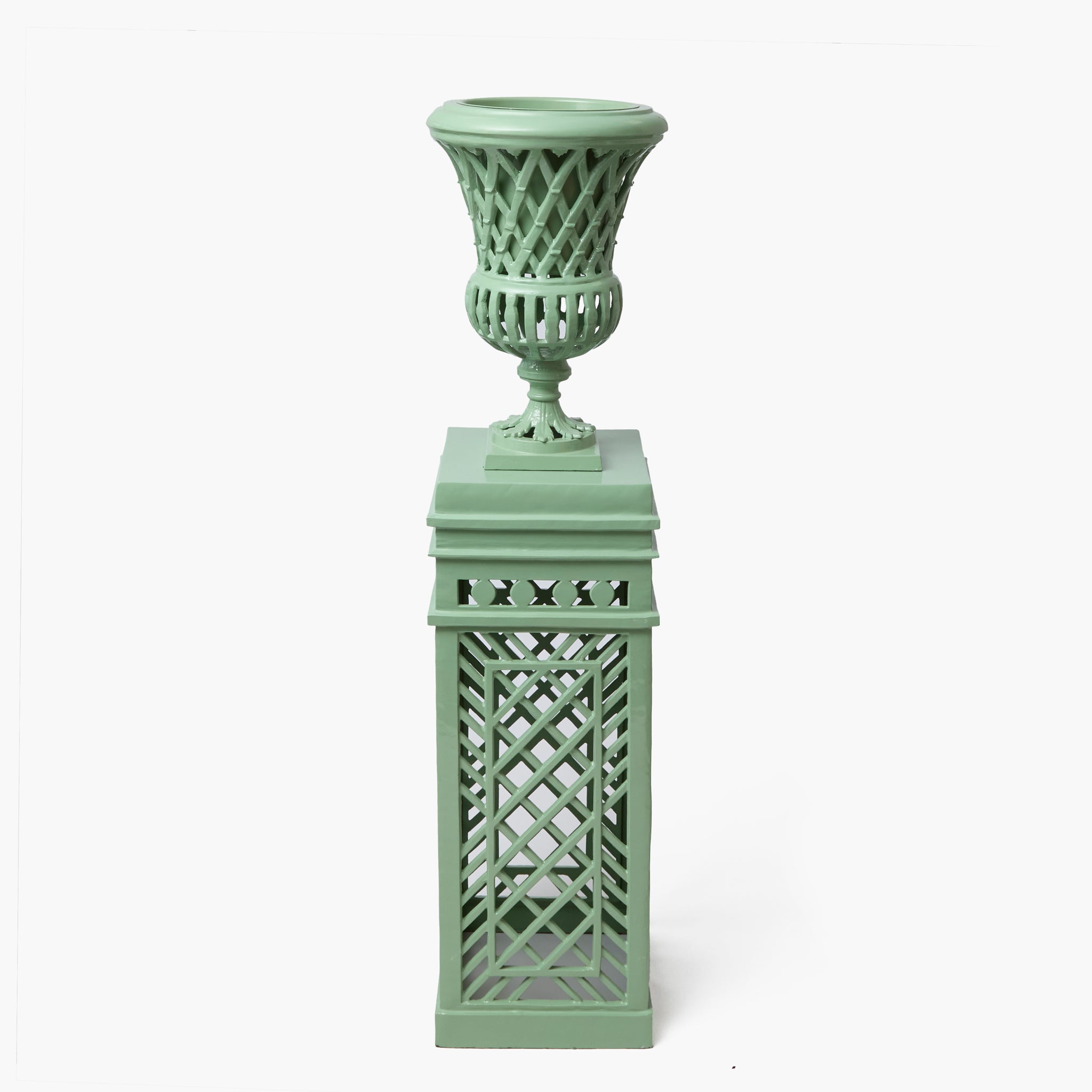 Create a glorious yet grand statement with our Adelaide Soft Green Lattice Urn & Pedestal. These two lattice pieces are crafted from durable aluminium and come in a soft, sage hue. The matching stand creates a sophisticated base that can be styled in entryways, garden rooms or on a terrace.