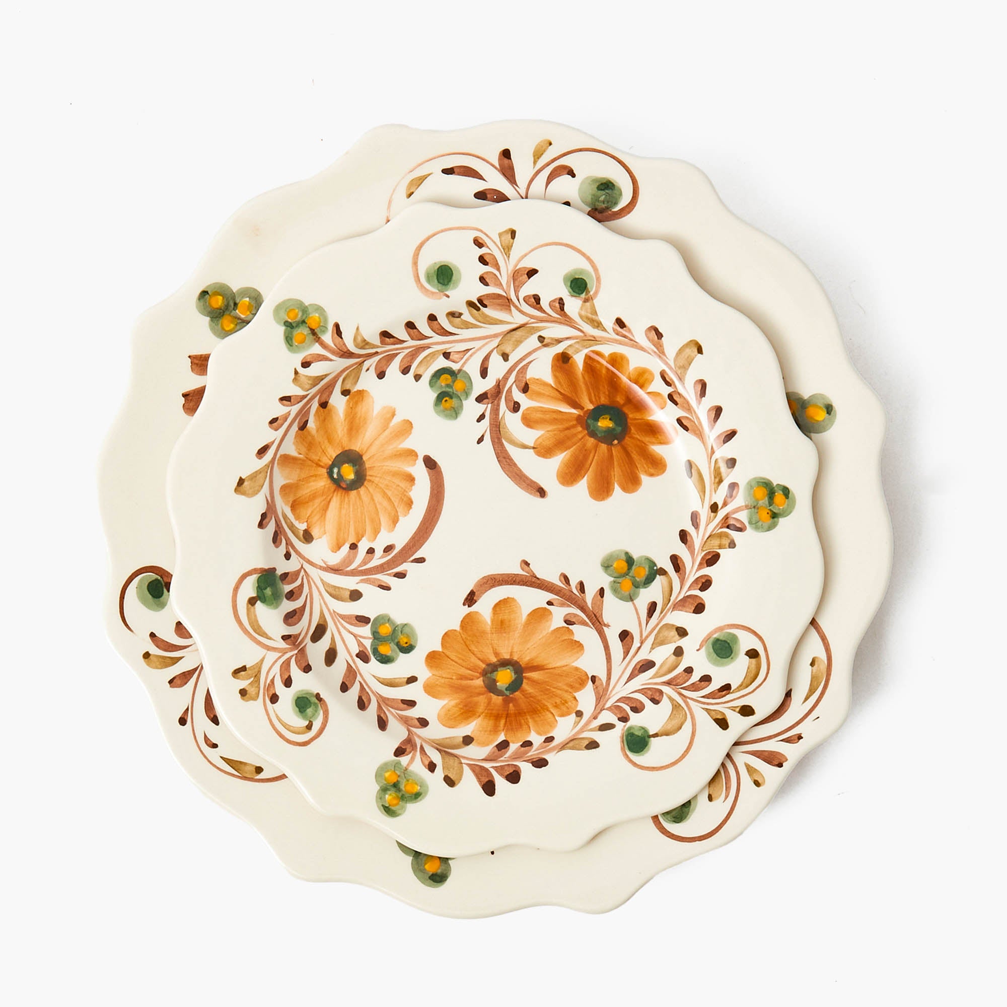 Our Autumn Flowers Starter Plate is a lightly scalloped piece that's ideal for serving your favourite starters and appetisers on. Our skilled artisans have hand-painted this plate with a stunning floral design, in a warm yet earthy colour palette.