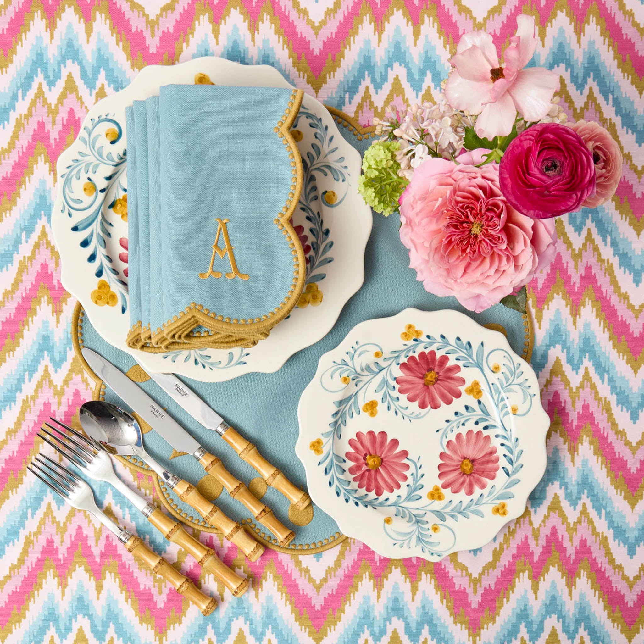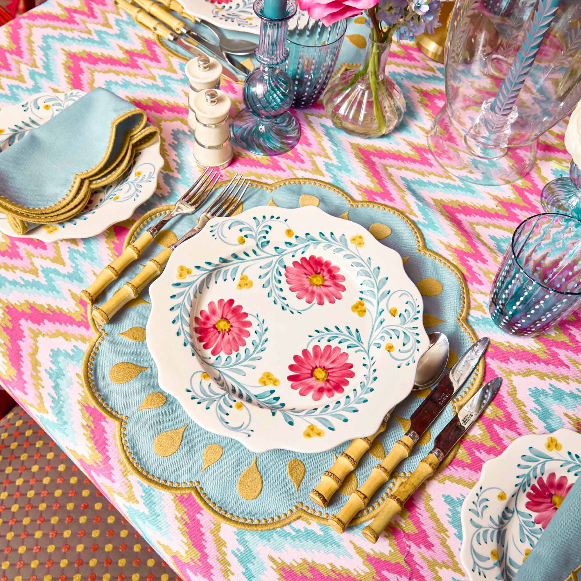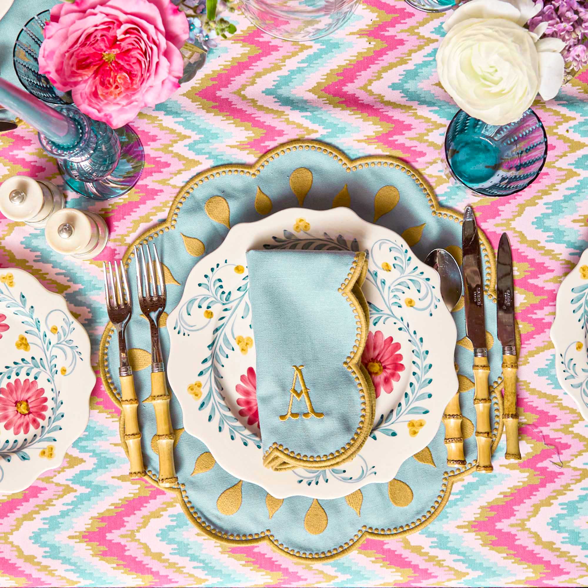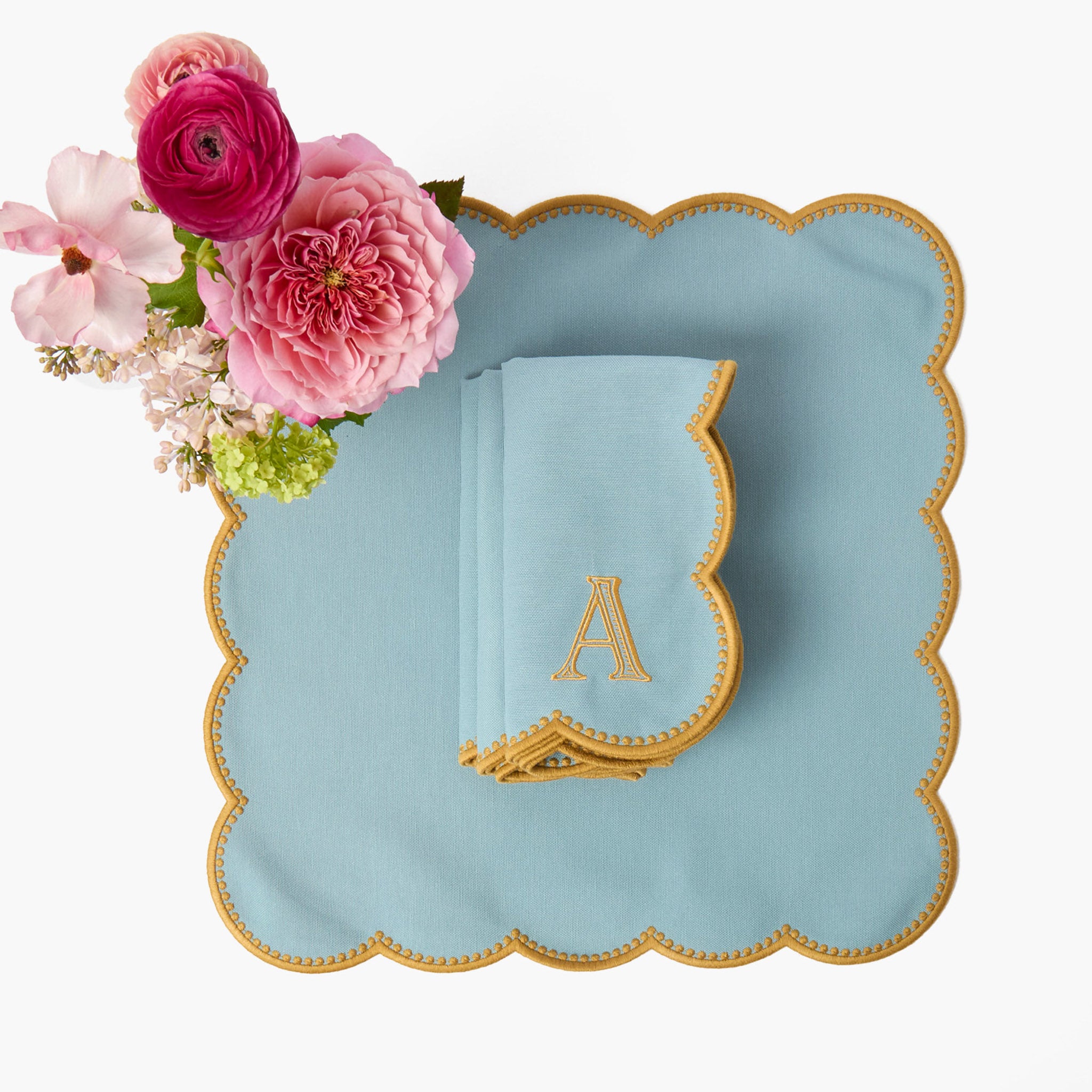 Our Bettina Blue & Caramel Napkins are a refreshing take on seasonal dining. Coming with a caramel, scalloped trim, these four napkins are fantastic for setting the scene for sunny meals.