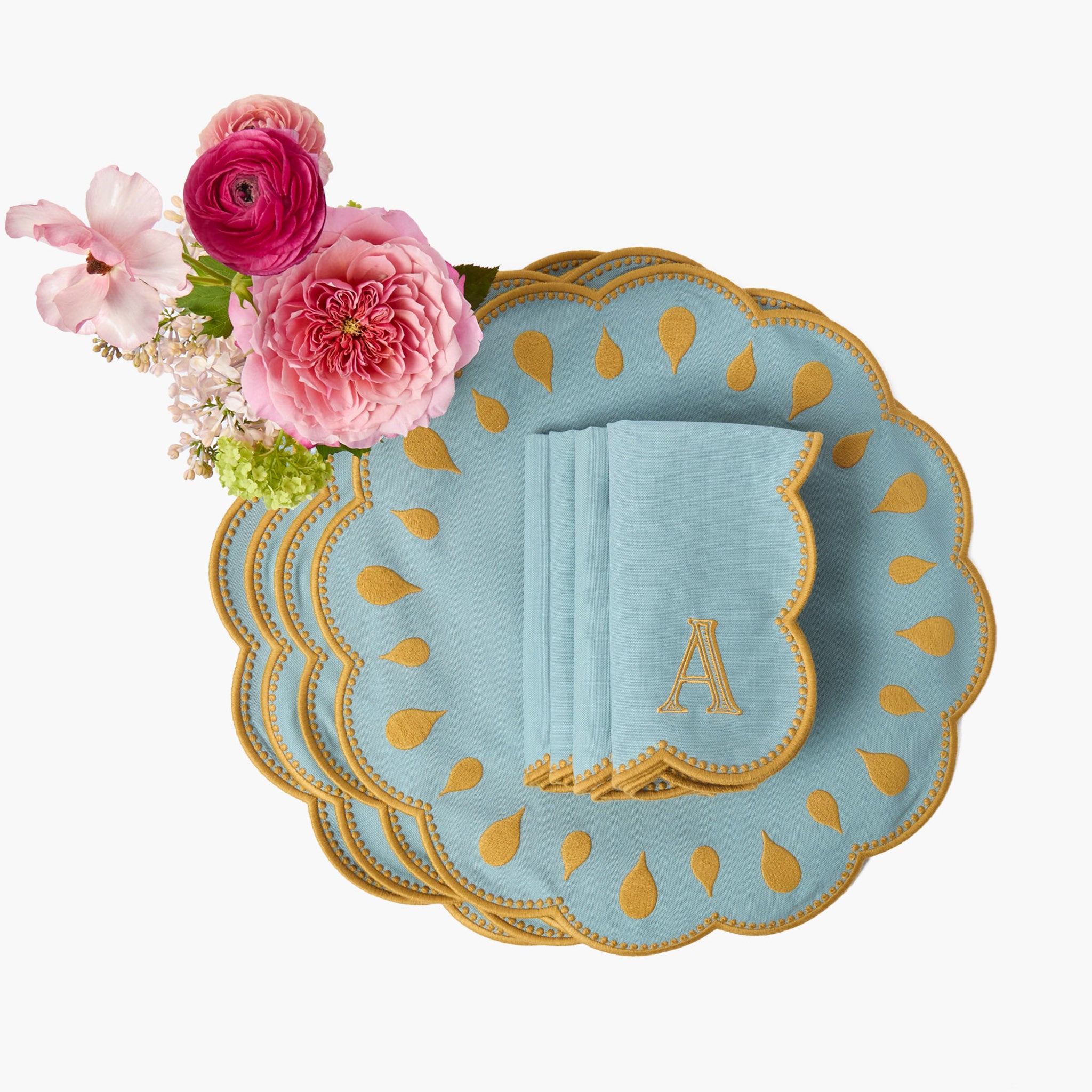 Bettina Blue & Caramel Placemats & Napkins (Set of 4)
