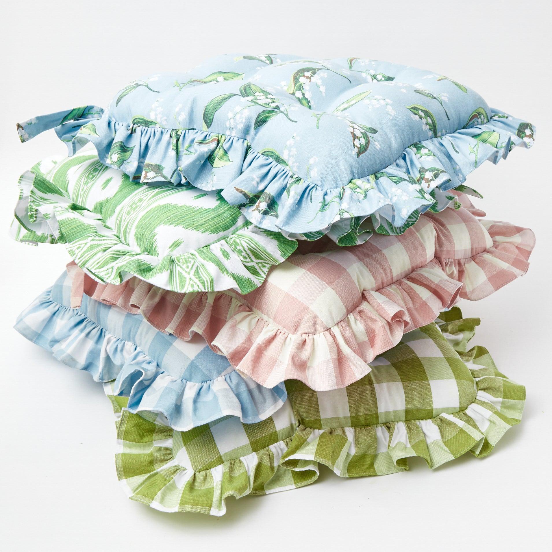 Blue Gingham Ruffle Seat Pad Cushion - Mrs. Alice