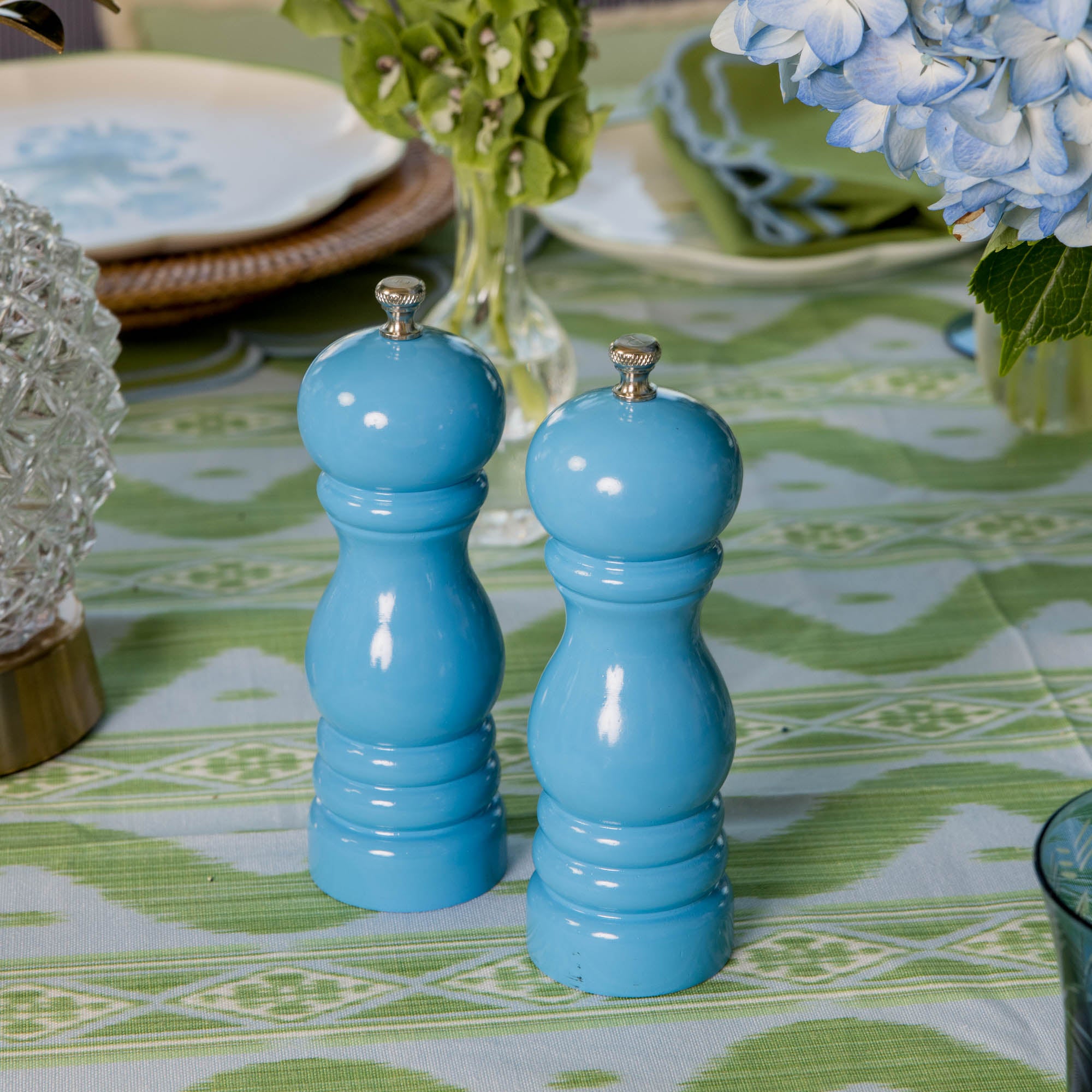 Complete your table settings with our Blue Lacquer Salt & Pepper Mill. This pair of bright blue mills comes in a glossy finish and traditional shape.