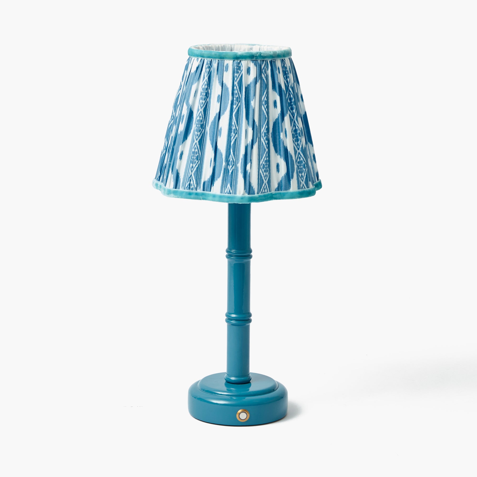 Blue Leonora Lacquer Rechargeable Lamp with Blue Ikat Shade (18cm)
