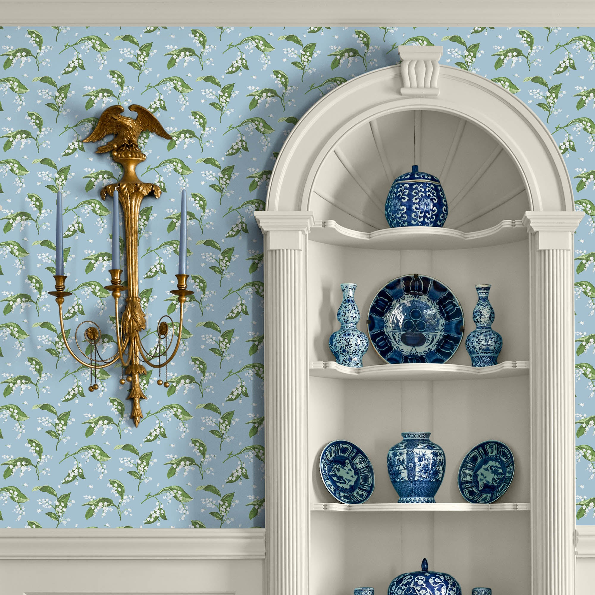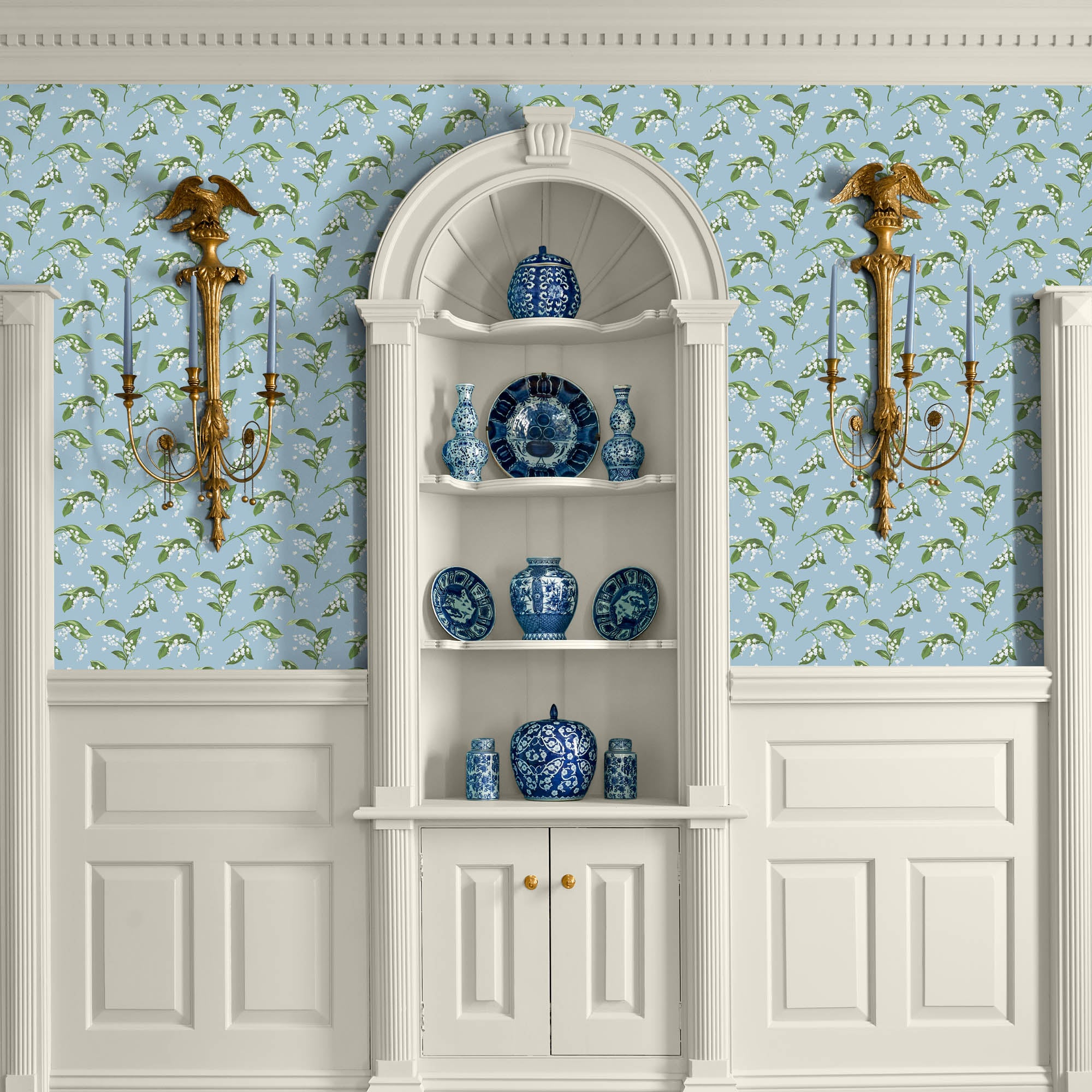 Our elegant Blue Lily of the Valley Wallpaper has been designed to add a touch of sophistication to any space. The tranquil blue background is adorned with a cascading print of delicate lilies. Complement yours with our matching fabric for a cohesive and aesthetic feel throughout your home.