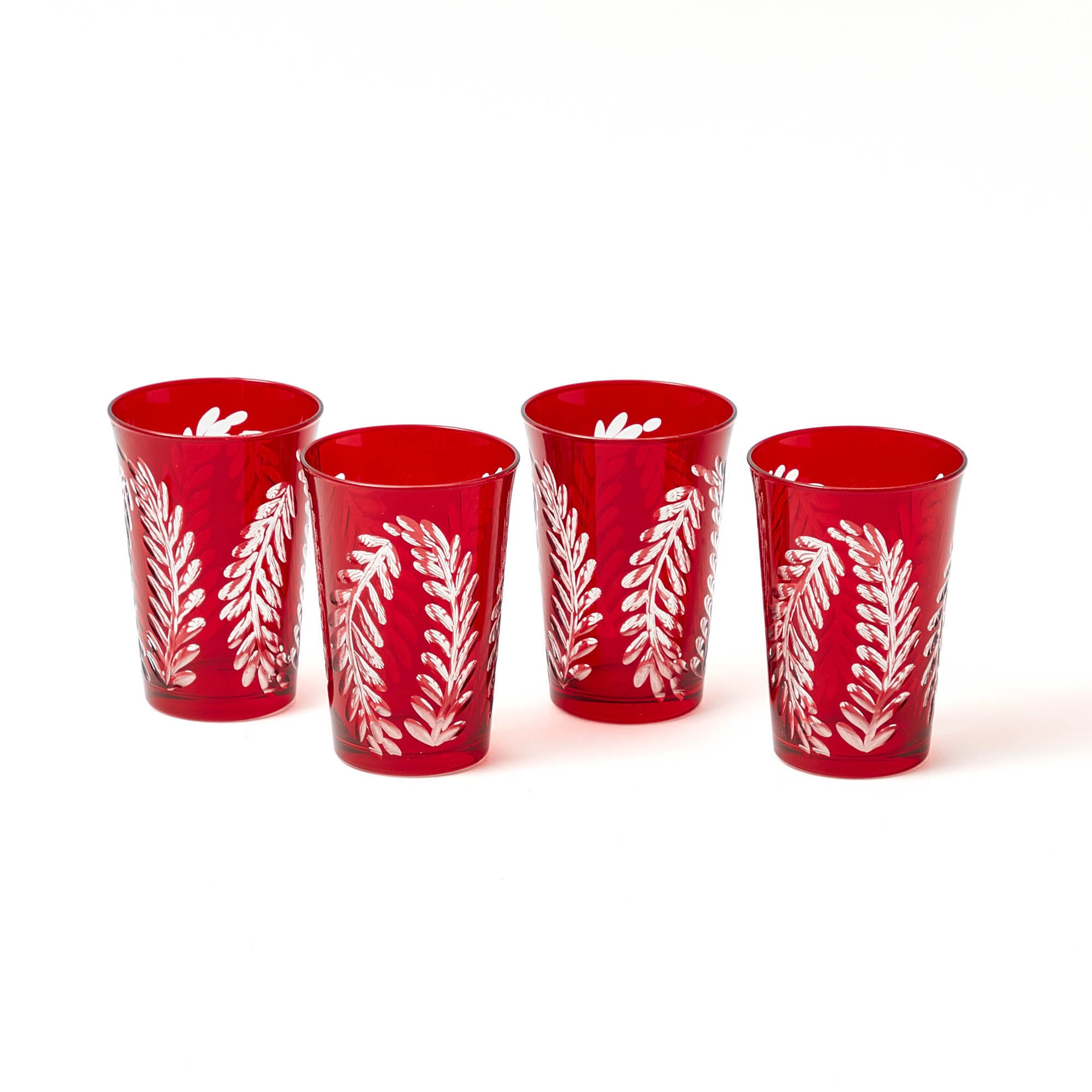 Brigitte Red Garland Engraved Water Glass (Set of 4)