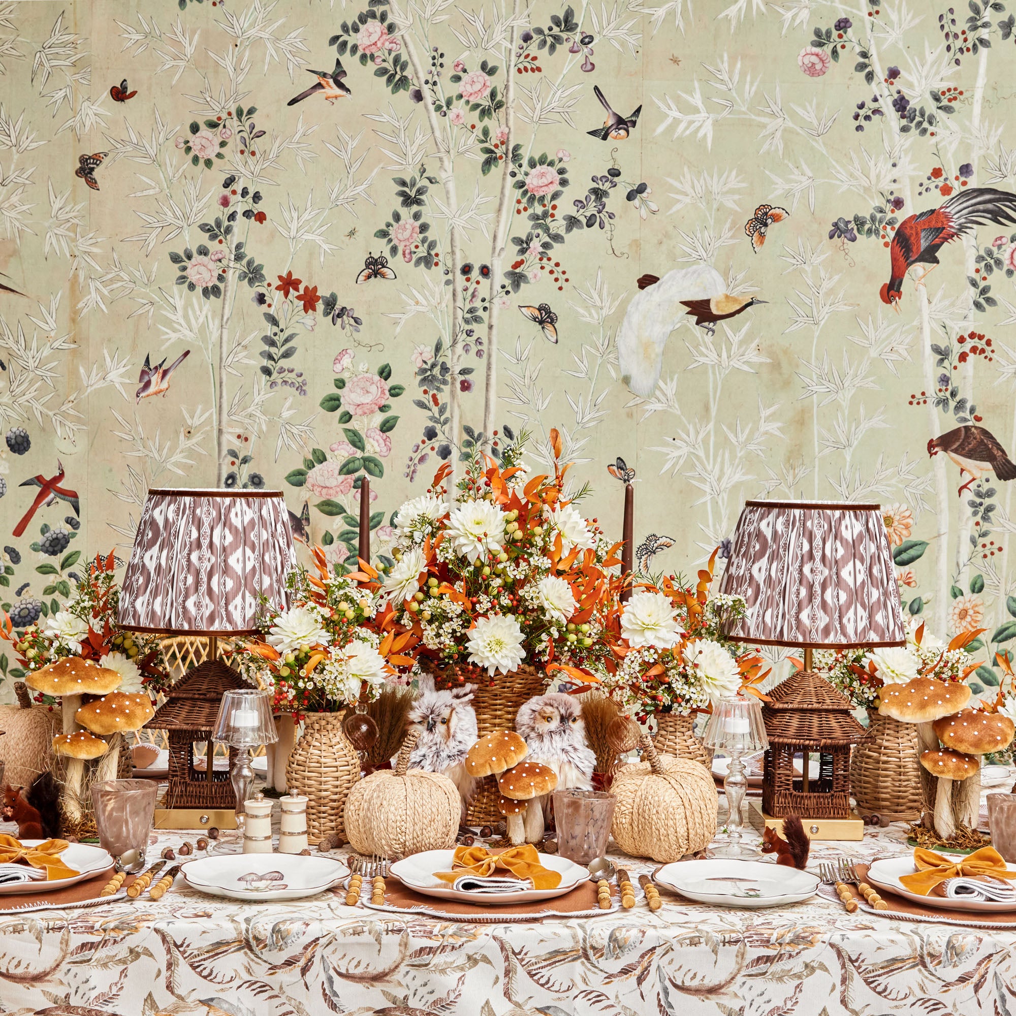 Elegant and chic, it features Serena Fresson's Ikat Fabric in a warm brown with a matching chocolate velvet trim.