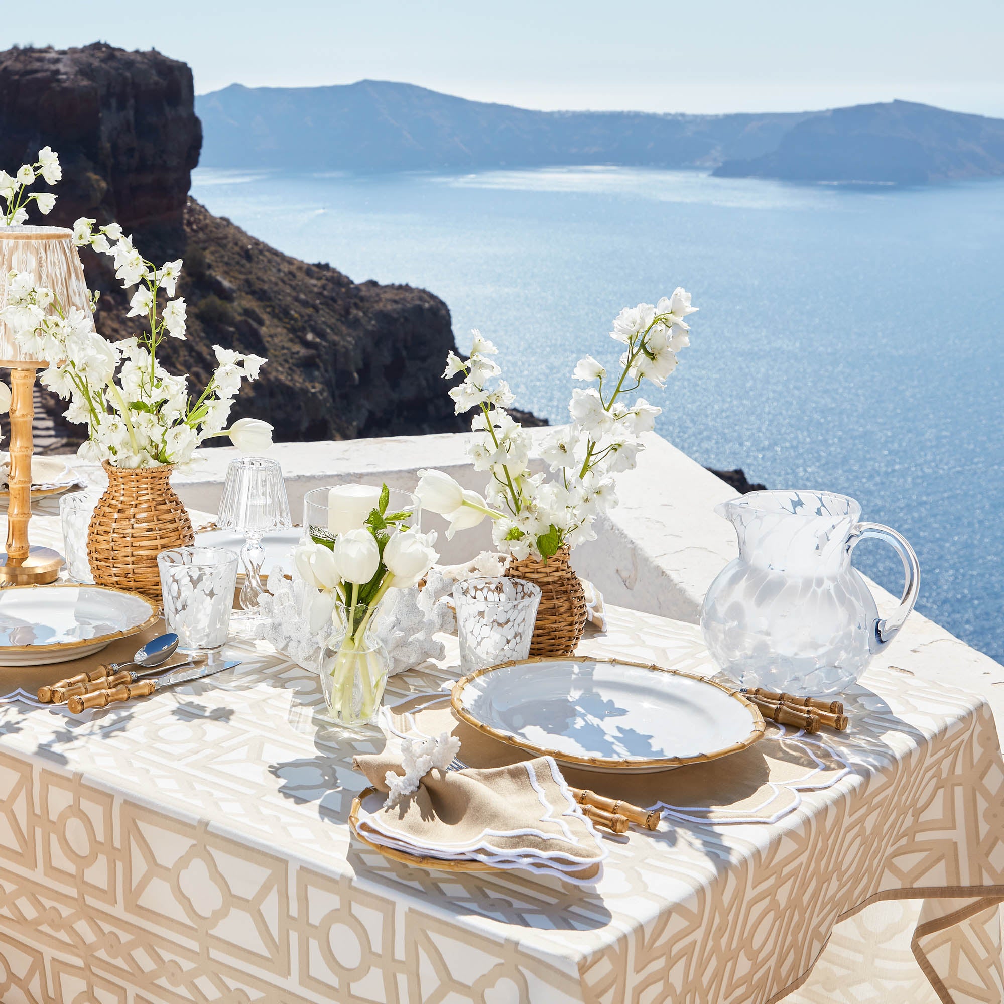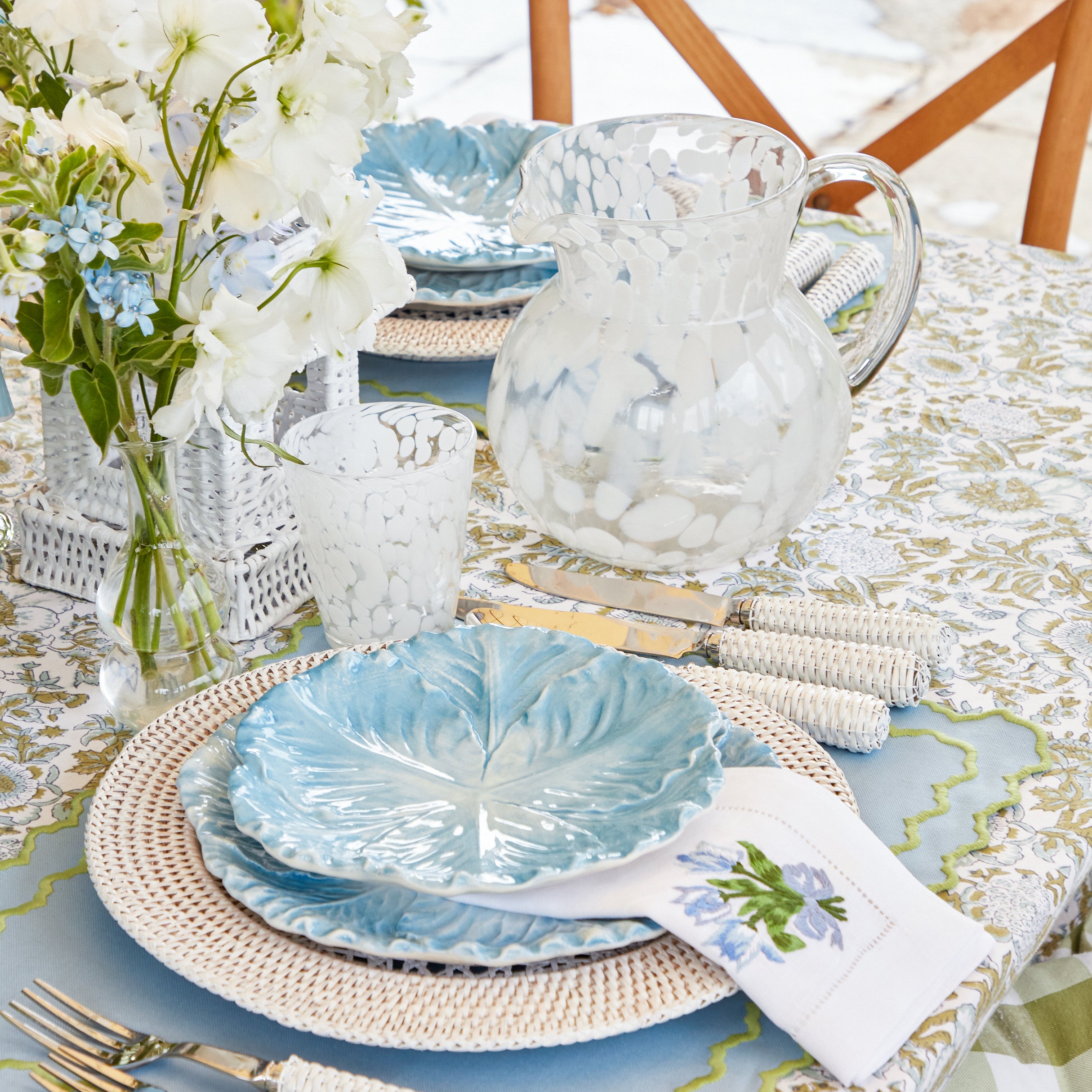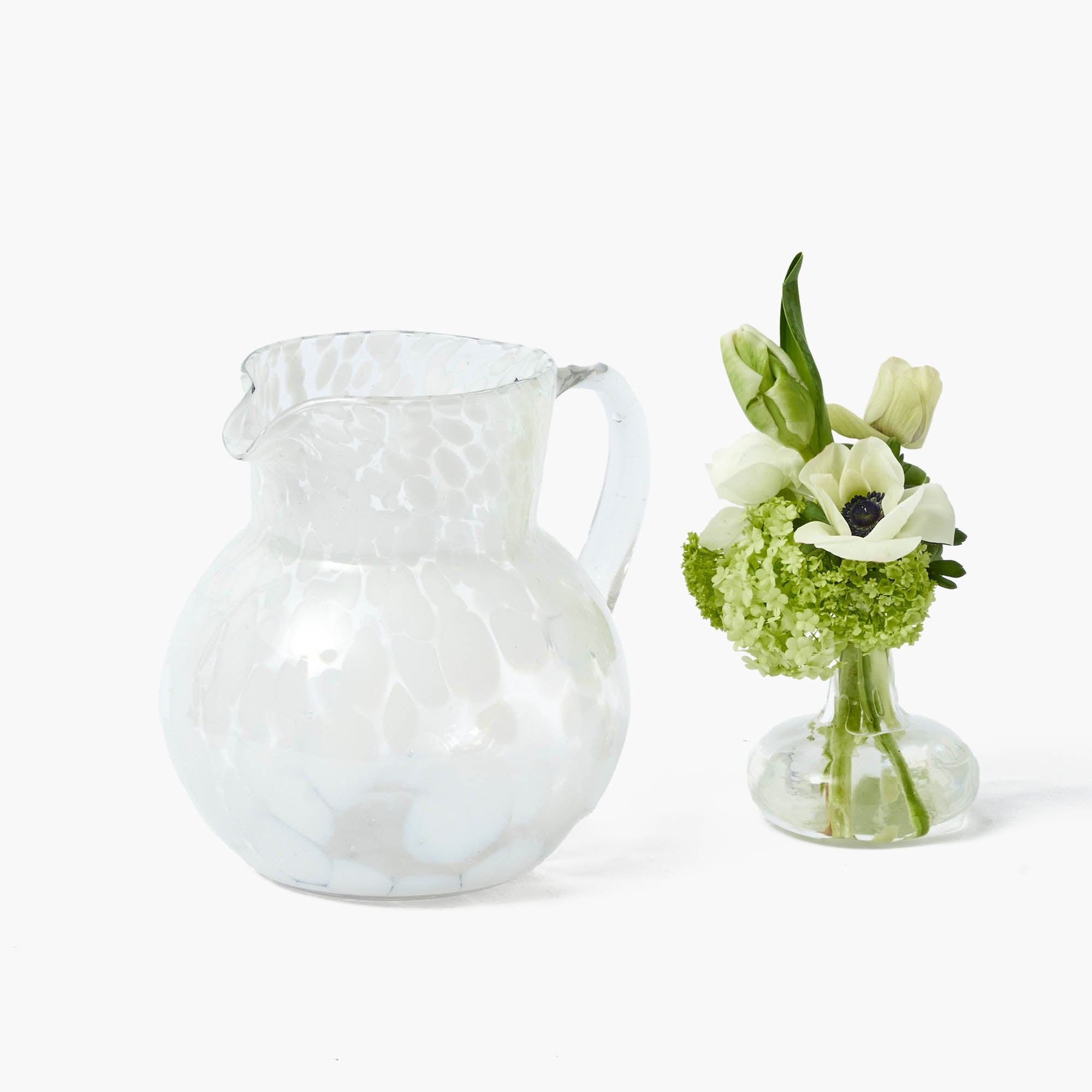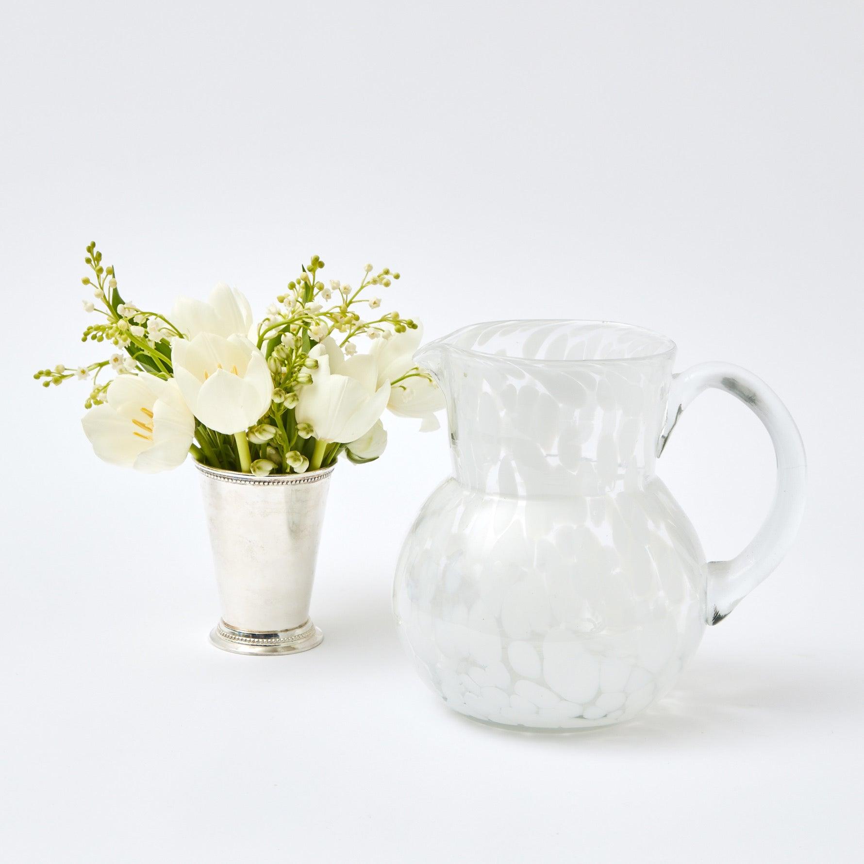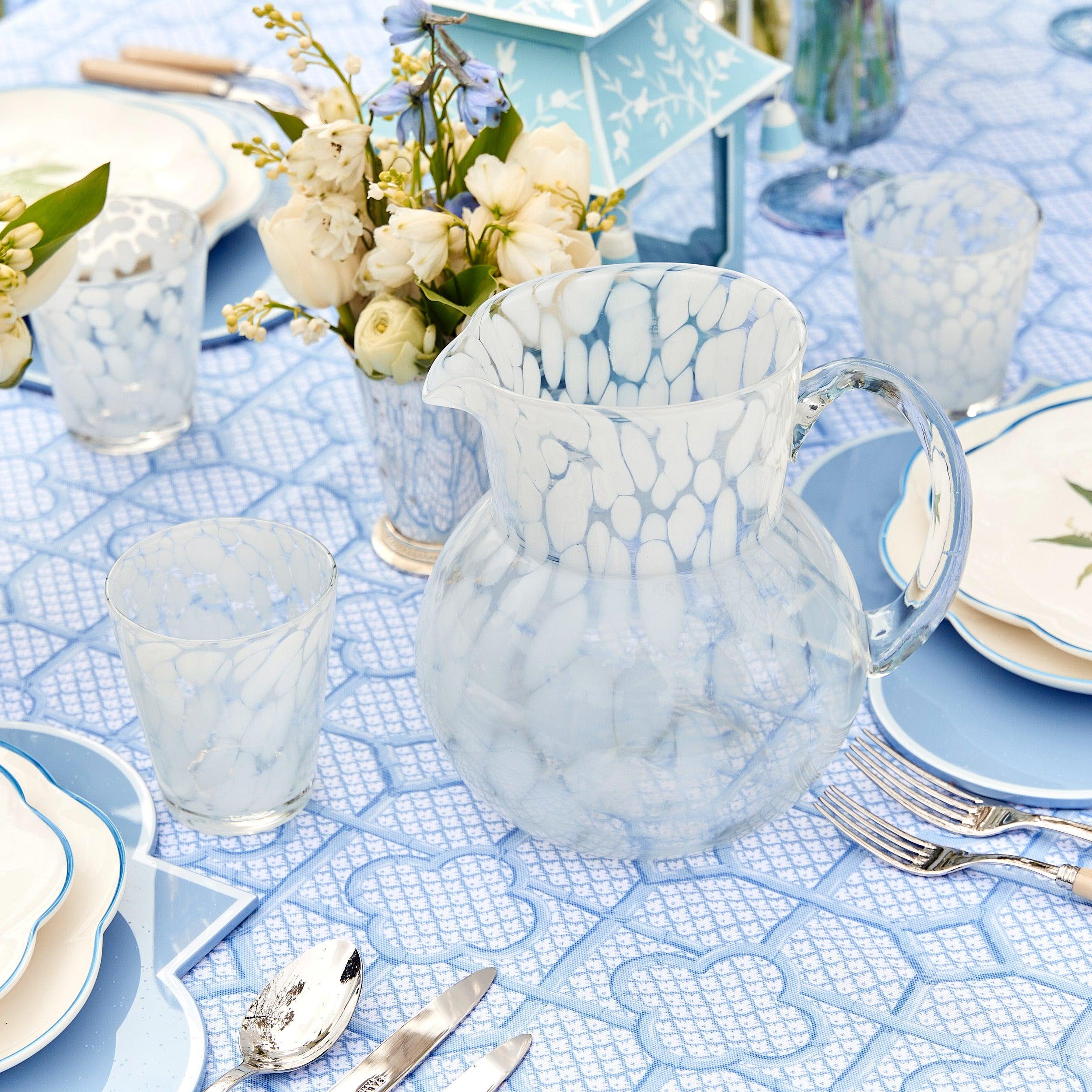 This Dappled Opaque Water Jug adds a chic touch to any table whether indoors or outdoors.