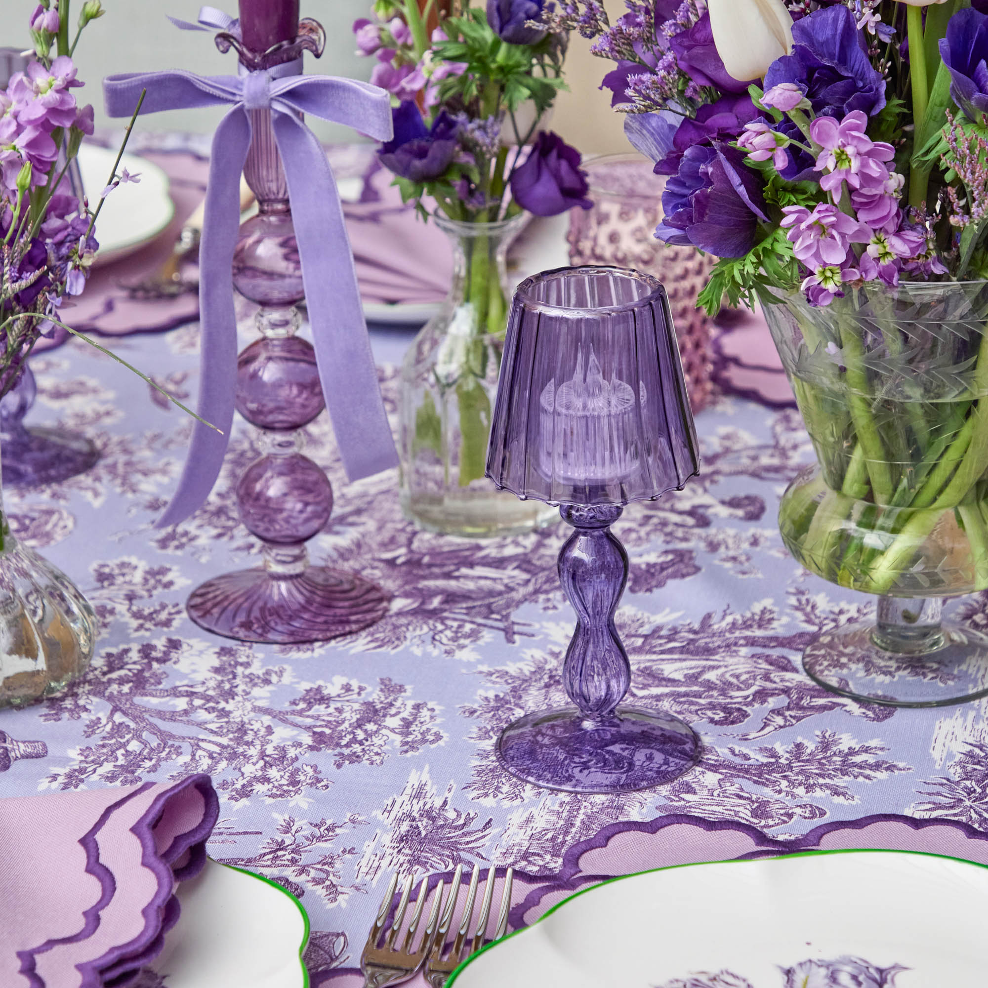 Evoke a sense of rich Regency style with our Eden Purple Candlescape. This six-piece set features both candlestick and tealight holders crafted from lilac glass. Style yours with our pack of eight violet candle sticks and create an intimate ambience.