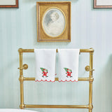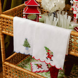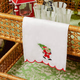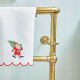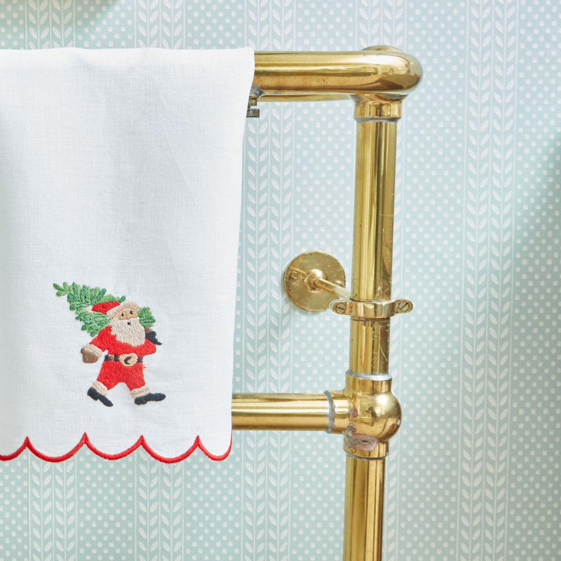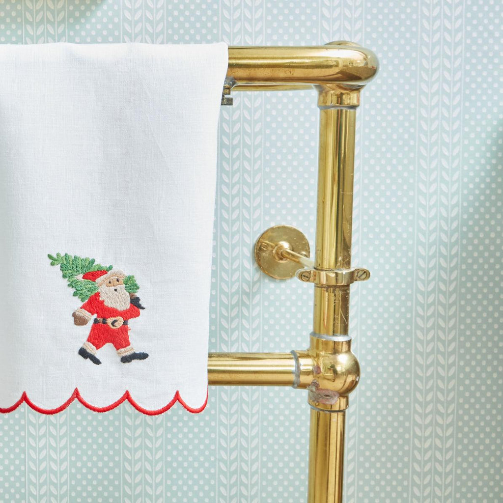 This beautiful 100% linen hand towel with its merry red scalloped border and embroidered Father Christmas is a charming addition to any bathroom or kitchen.