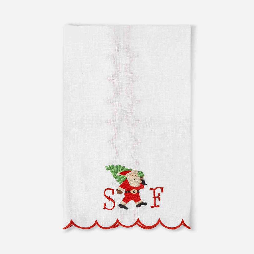 Embroidered Father Christmas Linen Hand Towel