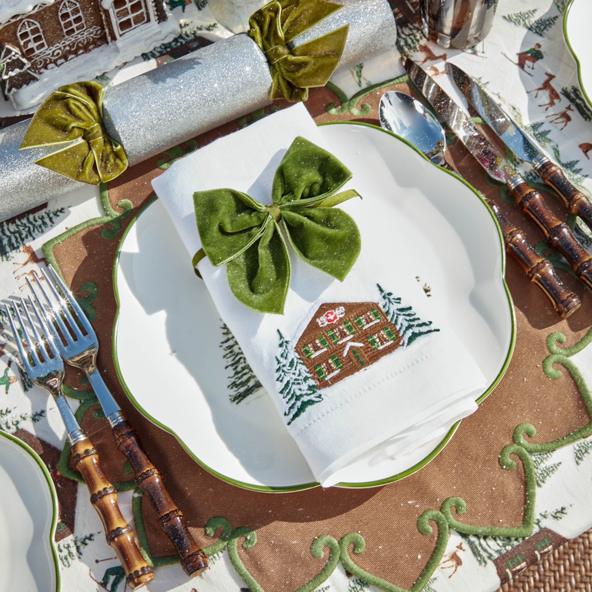 Use our set of 4 Velvet Napkin Bows for a seasonal touch of Forest Green.