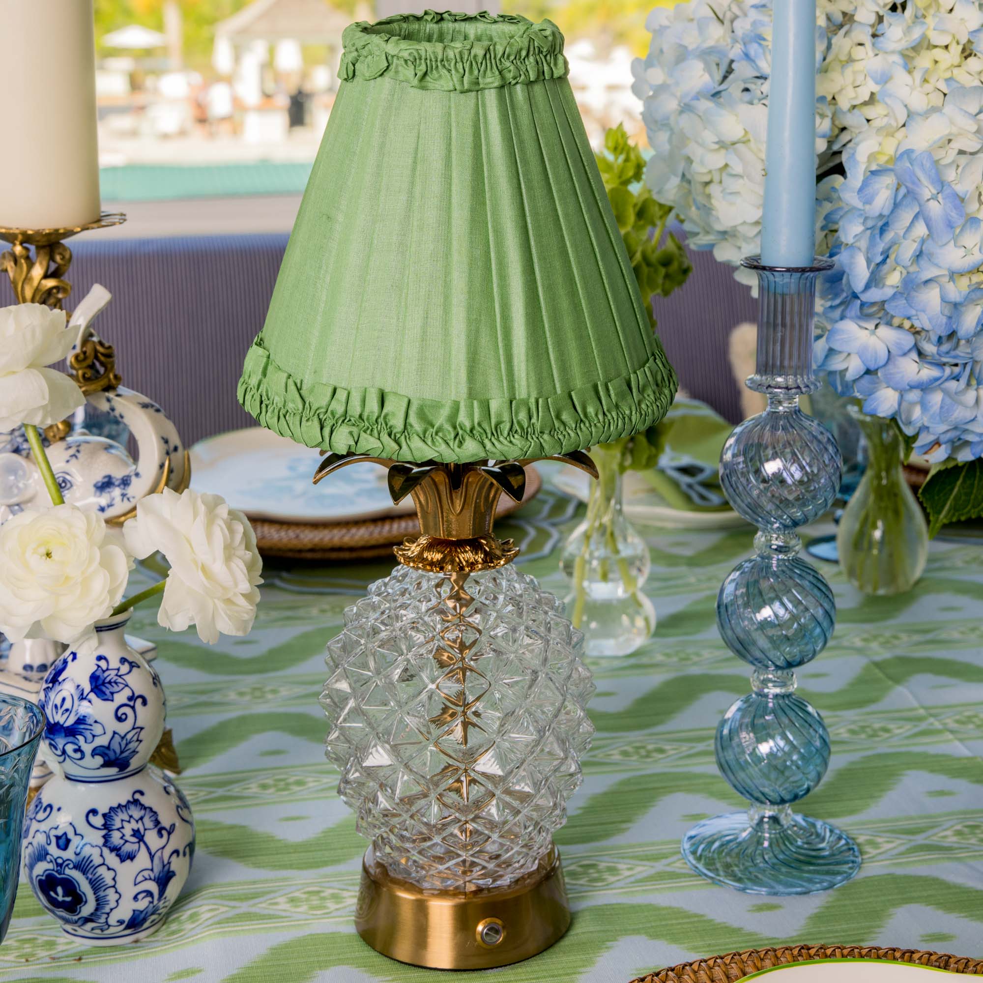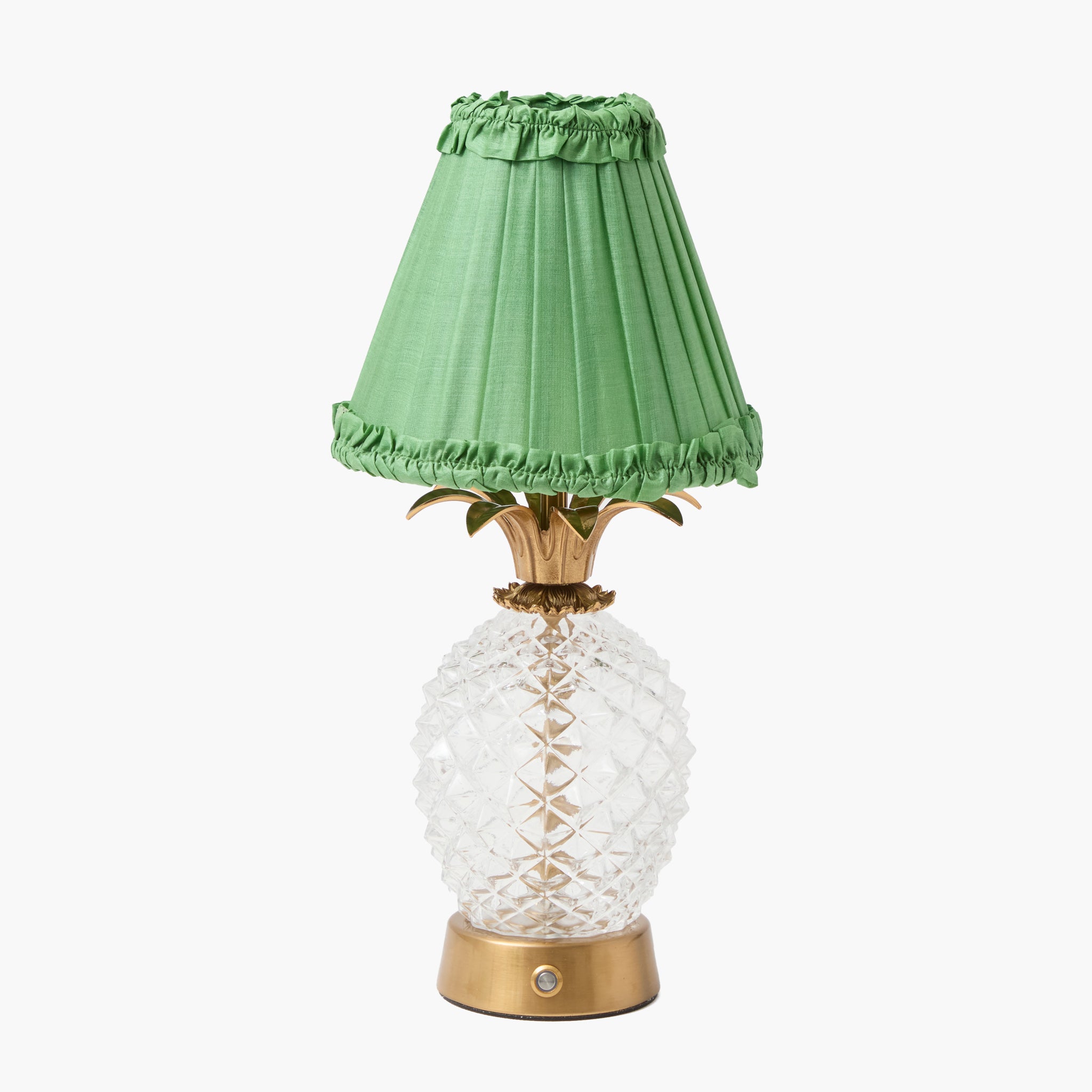 Glass Pineapple Rechargeable Lamp with Green Frilled Silk Shade (18cm)