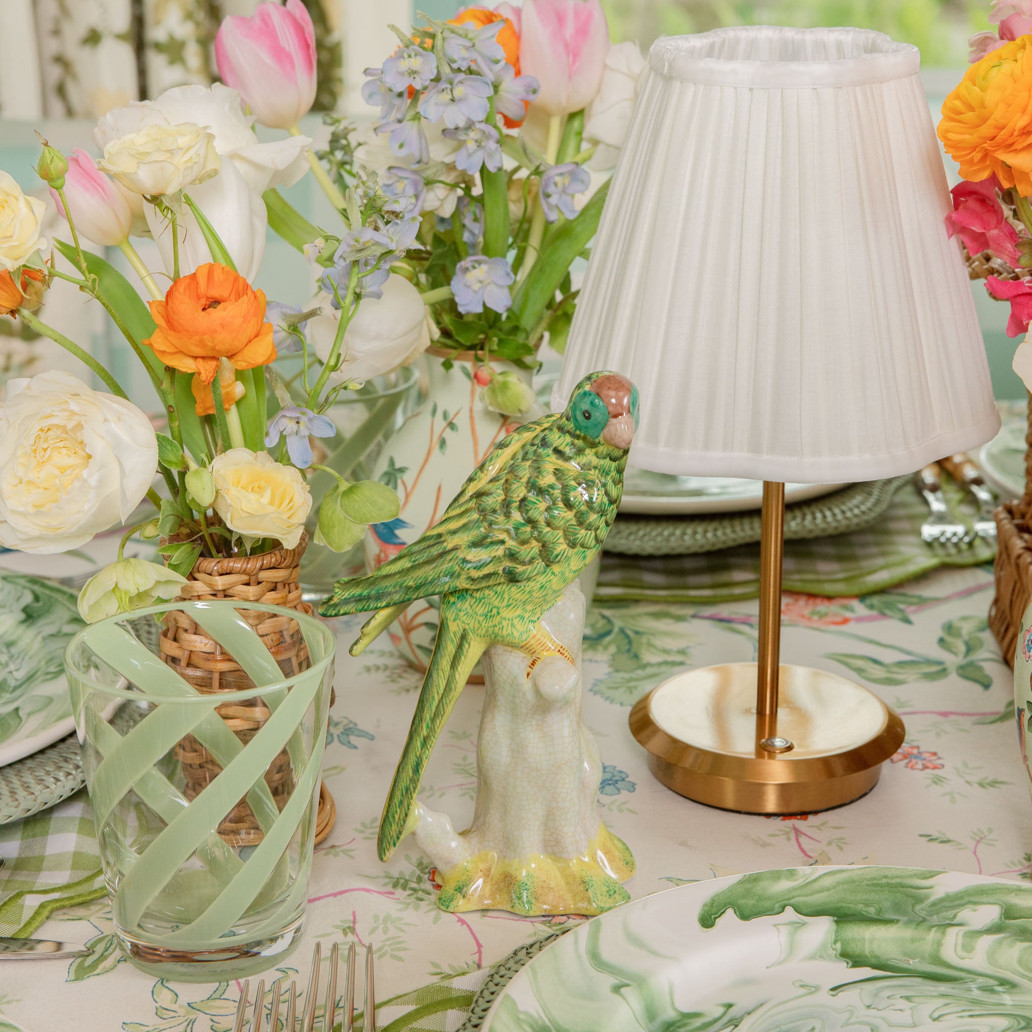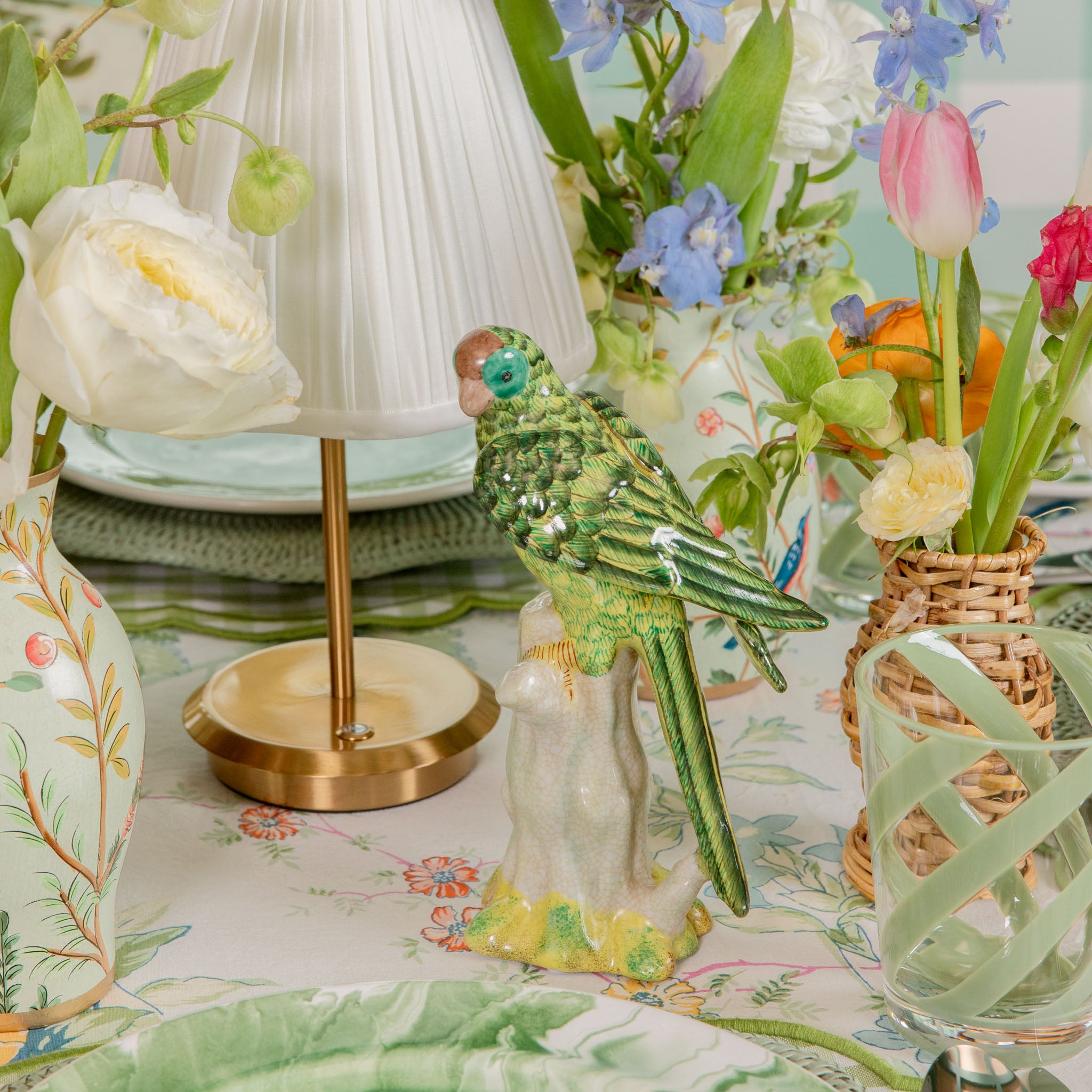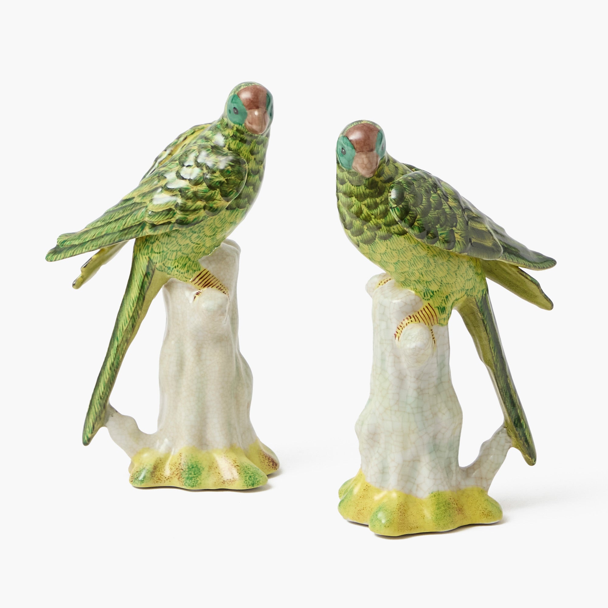 Our Green Porcelain Parrots are a pair of playful pieces that will instantly bring character to your tables or decor. Both come in a wonderful green hue and feature an intricate paint pattern where their feathers are. Style yours together or solo for a Southern twist to your home.