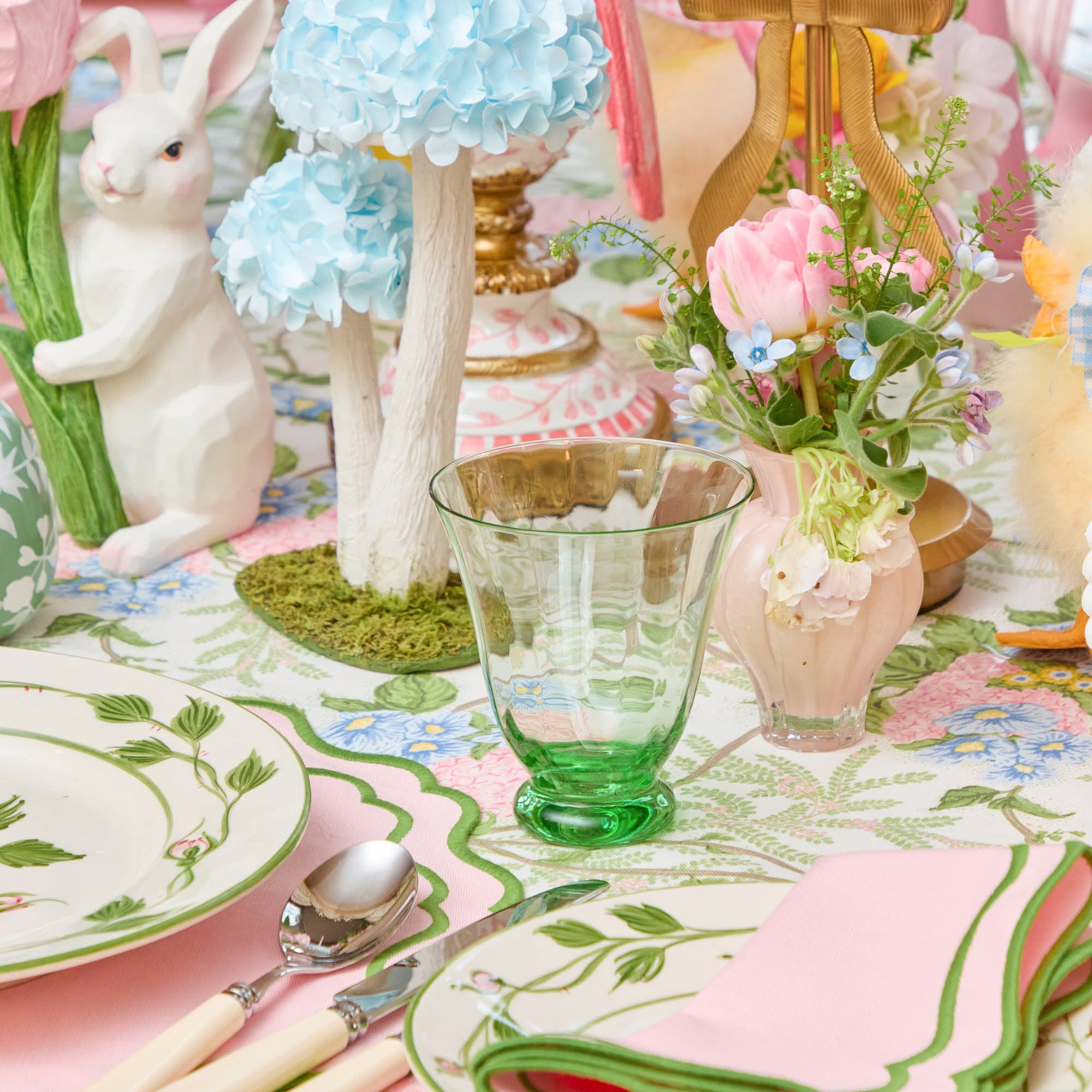 Green Tulip Water Glasses (Set of 4)
