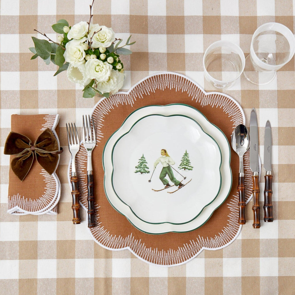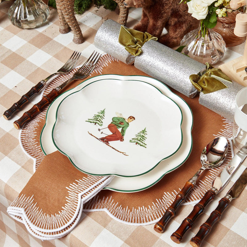 Pair this chic couple with our Heidi & Hans Skier Dinner Plates, Biscuit Gingham Tablecloth, Alathea Linen Placemats and Napkins & Burnt Bamboo Cutlery.
