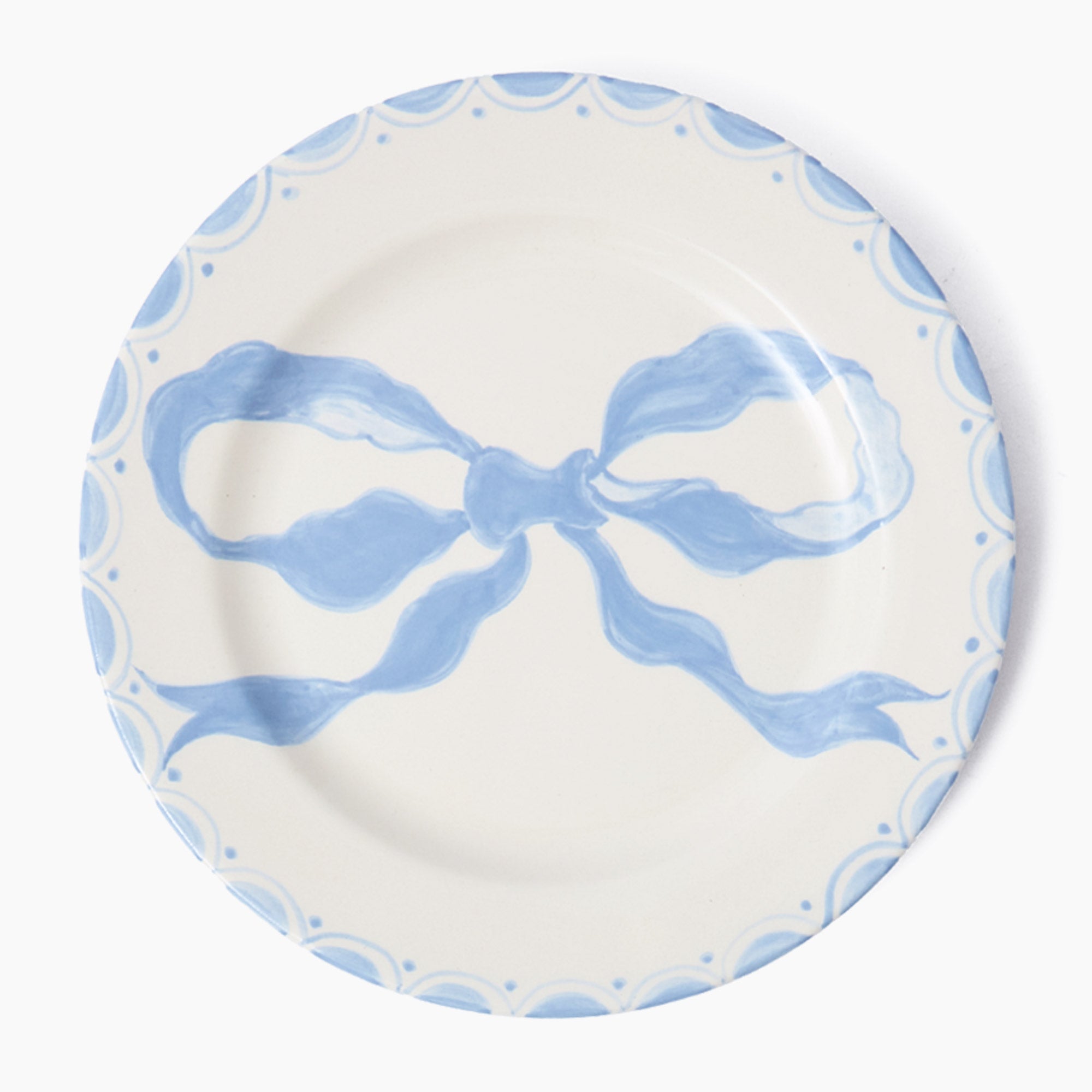 Add whimsical charm to your dinner table with our timeless Marilyn Blue Bow Dinner Plate. This feminine piece is crafted from ceramic and designed with an elegant bow across the plate. Coming in a soft pastel blue with an intricate border, this plate is perfect for uplifting your table settings.