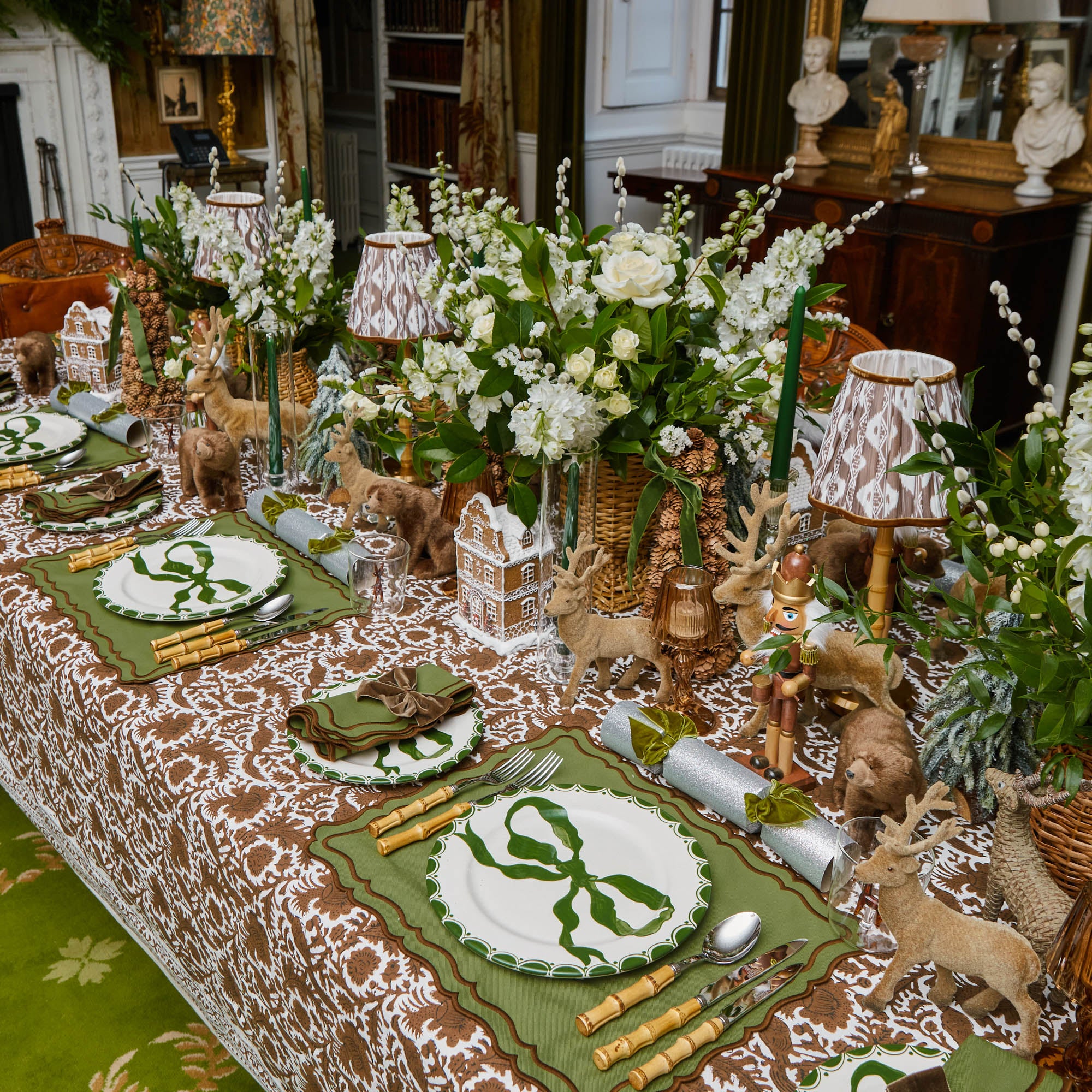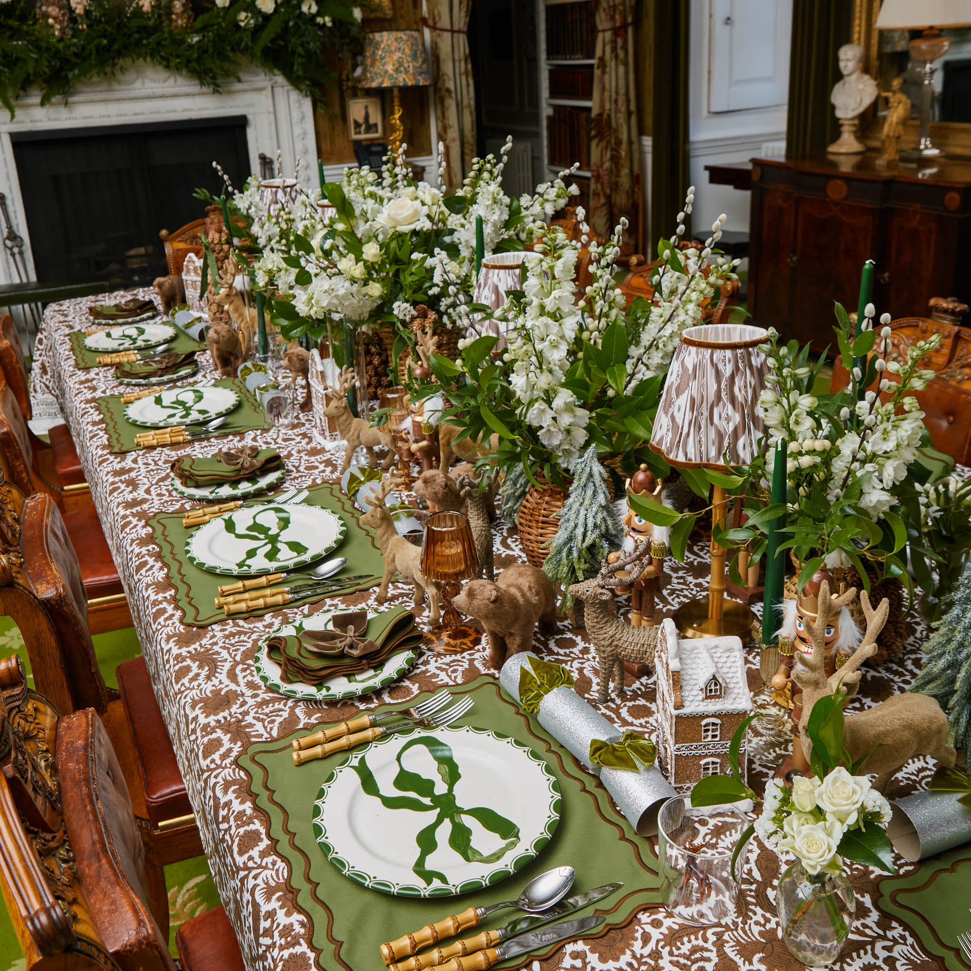 Embrace elegant charm while laying your table with our Marilyn Forest Green Bow Dinner Plate. This hand-painted ceramic plate has an intricate border and a timeless bow at its centre. Whether use for daily dinners or festive gatherings, this dinner plate will always exude refined elegance.