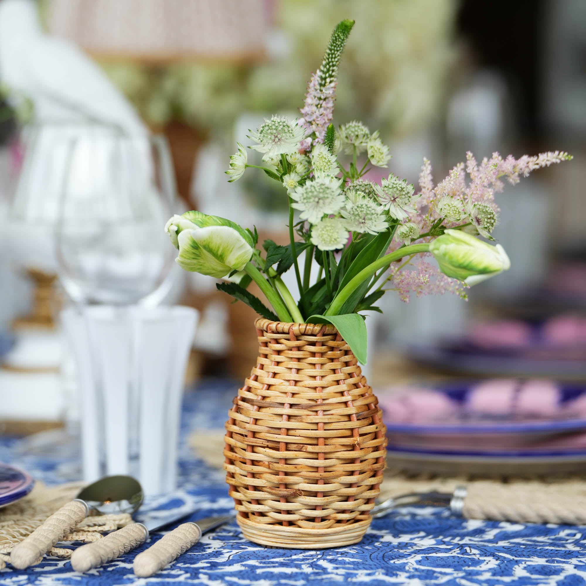 Infuse any corner with charm using the Mini Natural Rattan Vase Set. Crafted with a warm, natural texture, each vase beautifully complements seasonal blooms, creating a serene and inviting atmosphere. This set includes a curated selection from three distinct designs, perfect for adding a delicate, earthy touch to your home décor.