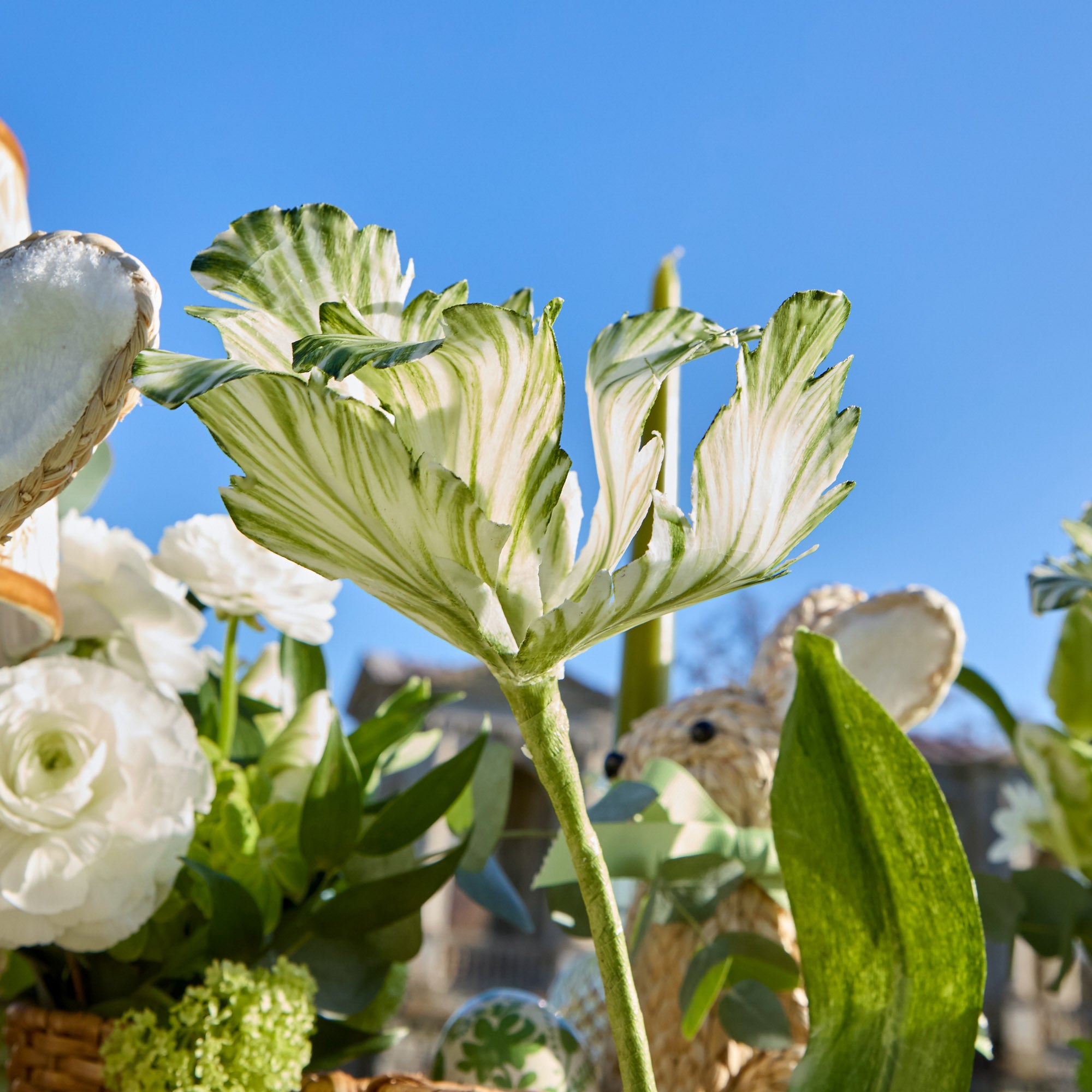 The Mrs. Alice Handpainted Green Tulip is an exquisite faux plant that will elevate any space within your home. Each petal has been carefully designed with such lifelike detail that it feels like you've brought a touch of nature into your home without the hassle of upkeep.