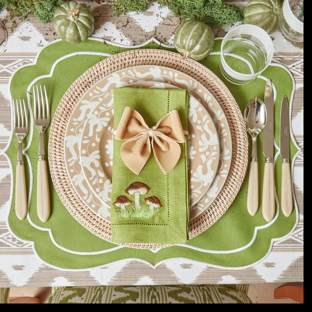 This pretty set of Oat Velvet Napkin Ring Bows was carefully crafted in France. Tie them around any napkin, candle stick or lamp for a touch of extra character and cheer.