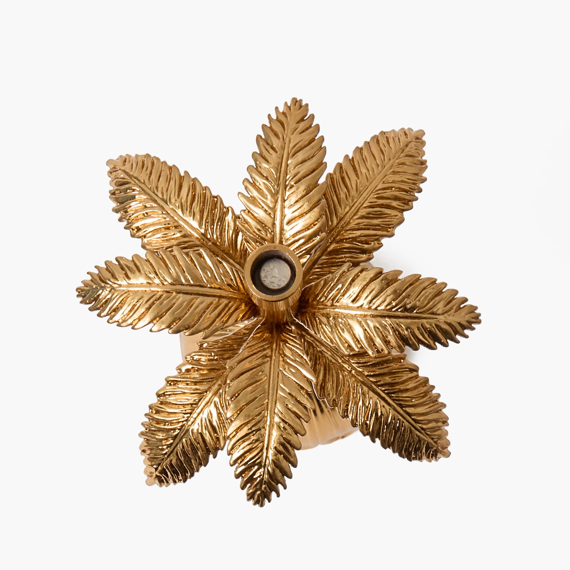 Bring a fun, summery feel to your decor with our Palm Tree Rechargeable Lamp. This golden lamp stand features a rechargeable bulb that's dimmable and controlled via a remote for quick ambience changes. The textured stand is designed with a flourishing palm tree that leads into our Green & Blue Lotus Shade.