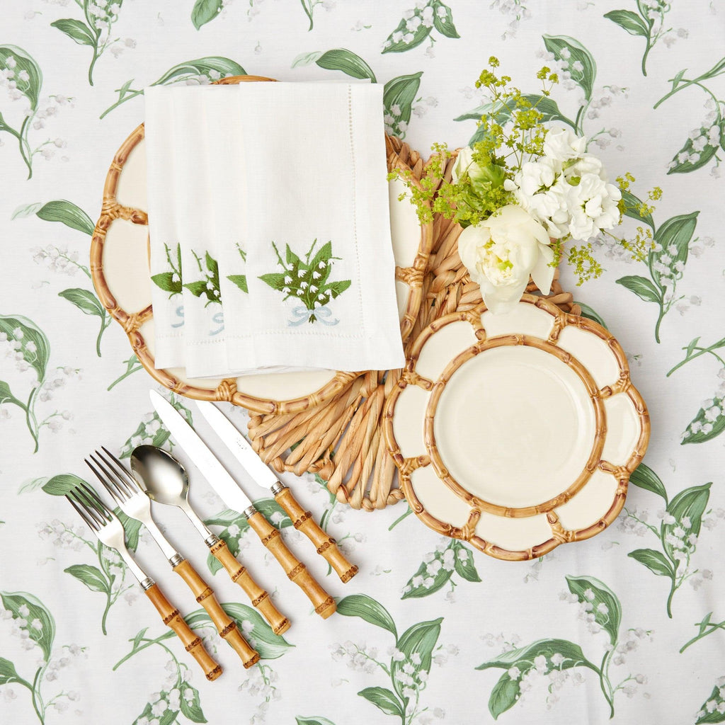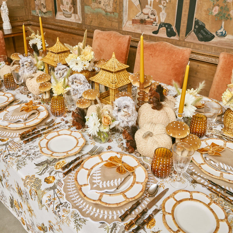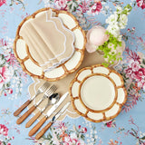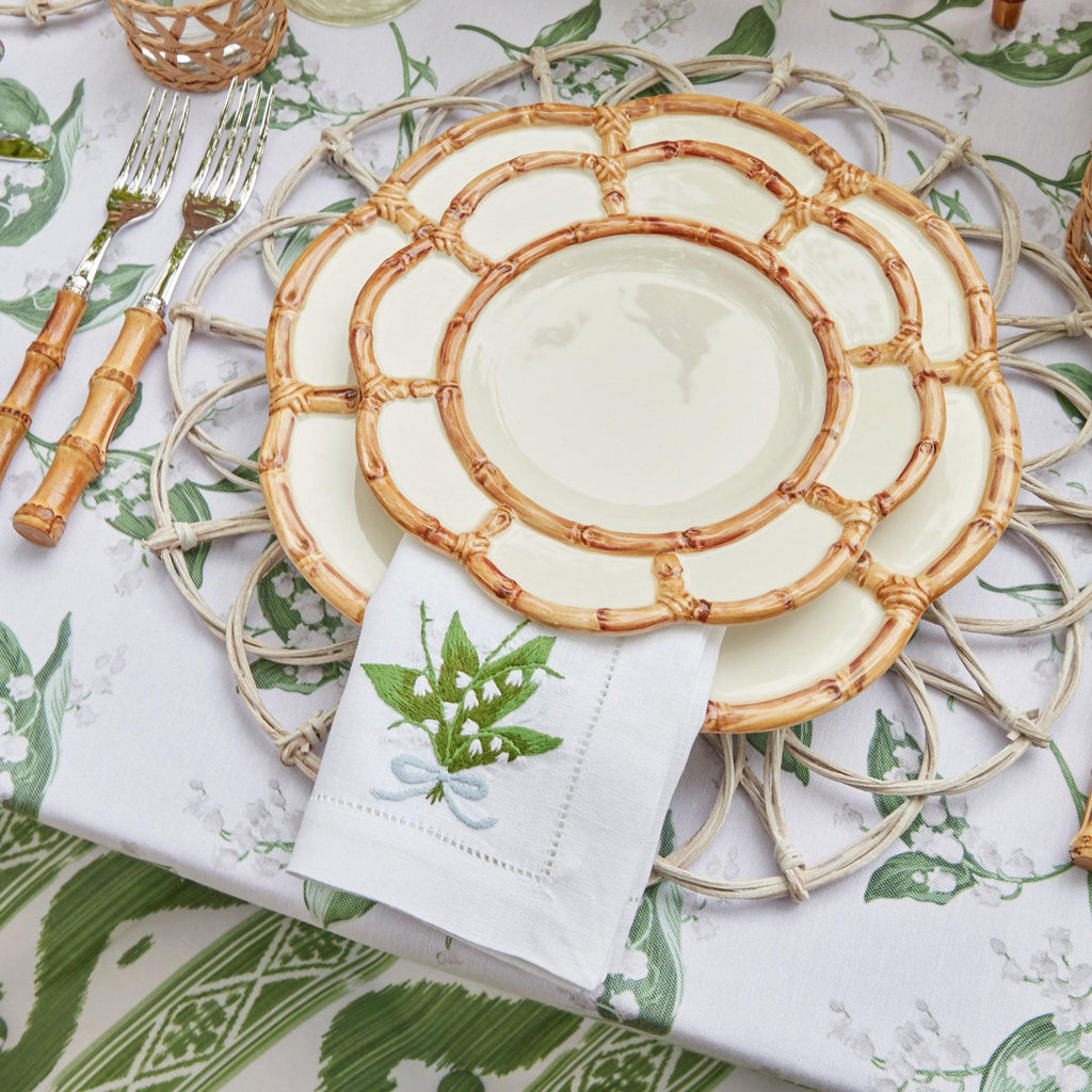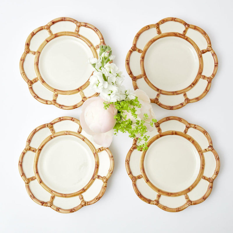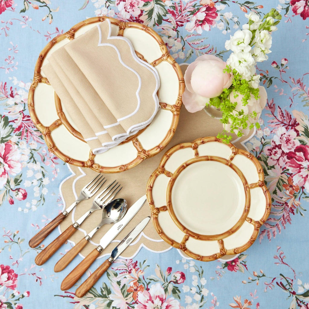 Our Petal Bamboo Ceramic Starter Plates, made exclusively for Mrs. Alice, are elegantly hand-painted in Italy. Their floral bamboo border adds a unique touch to these retro-inspired plates.
