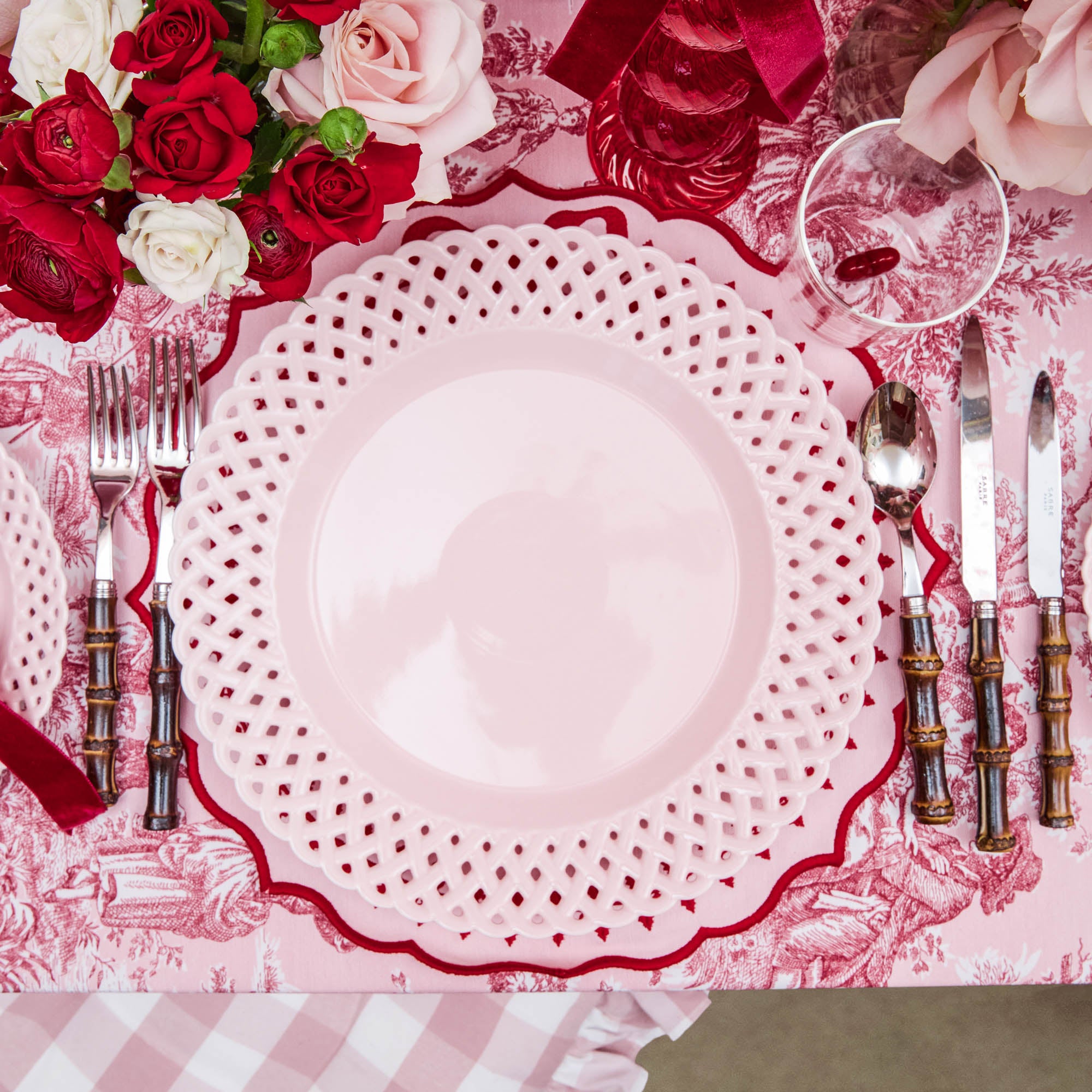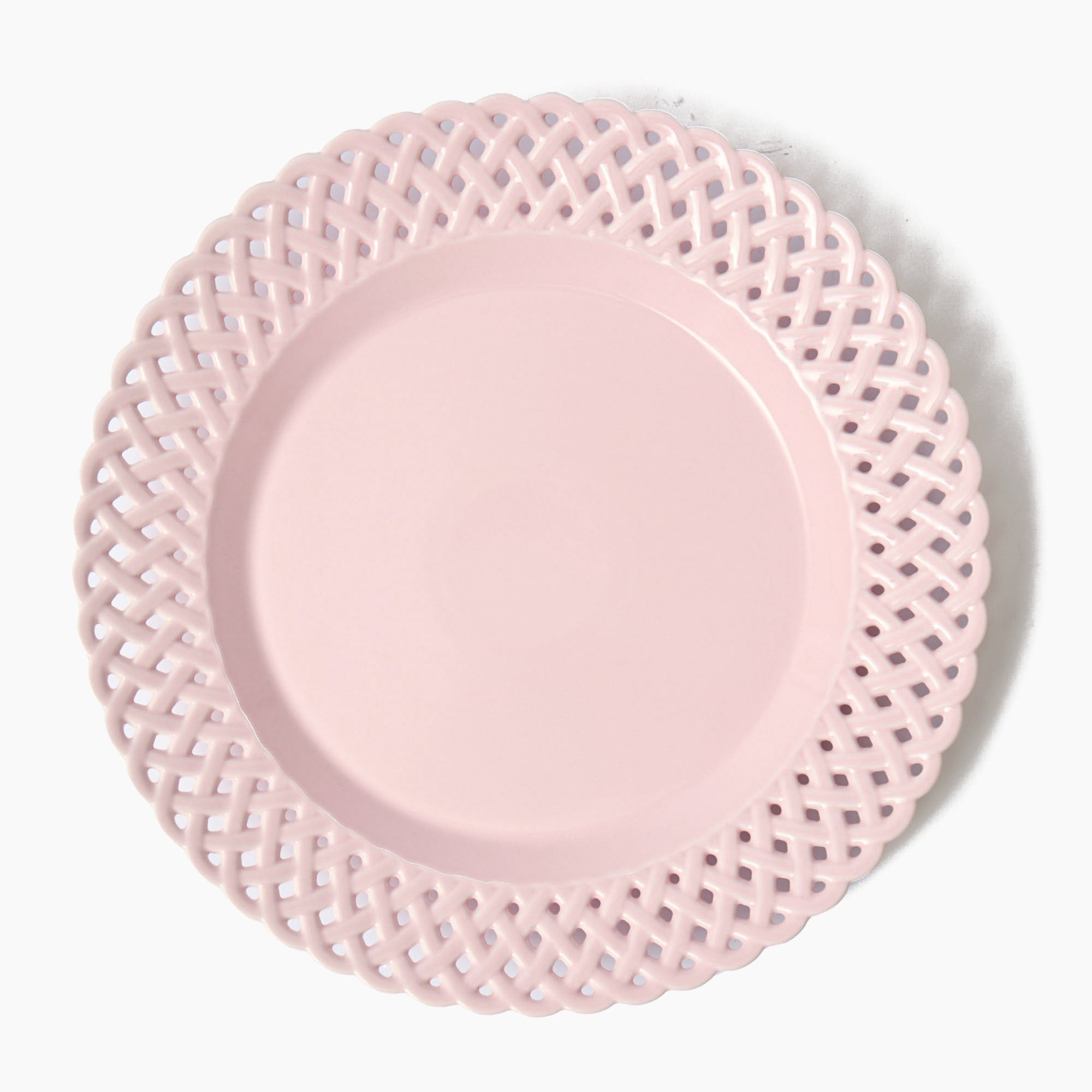 Bring allure to your dining experience with our stunning Pink Basketweave Dinner Plate. This dusky pink piece features a basketweave texture and is ideal for framing your Valentine's meal.