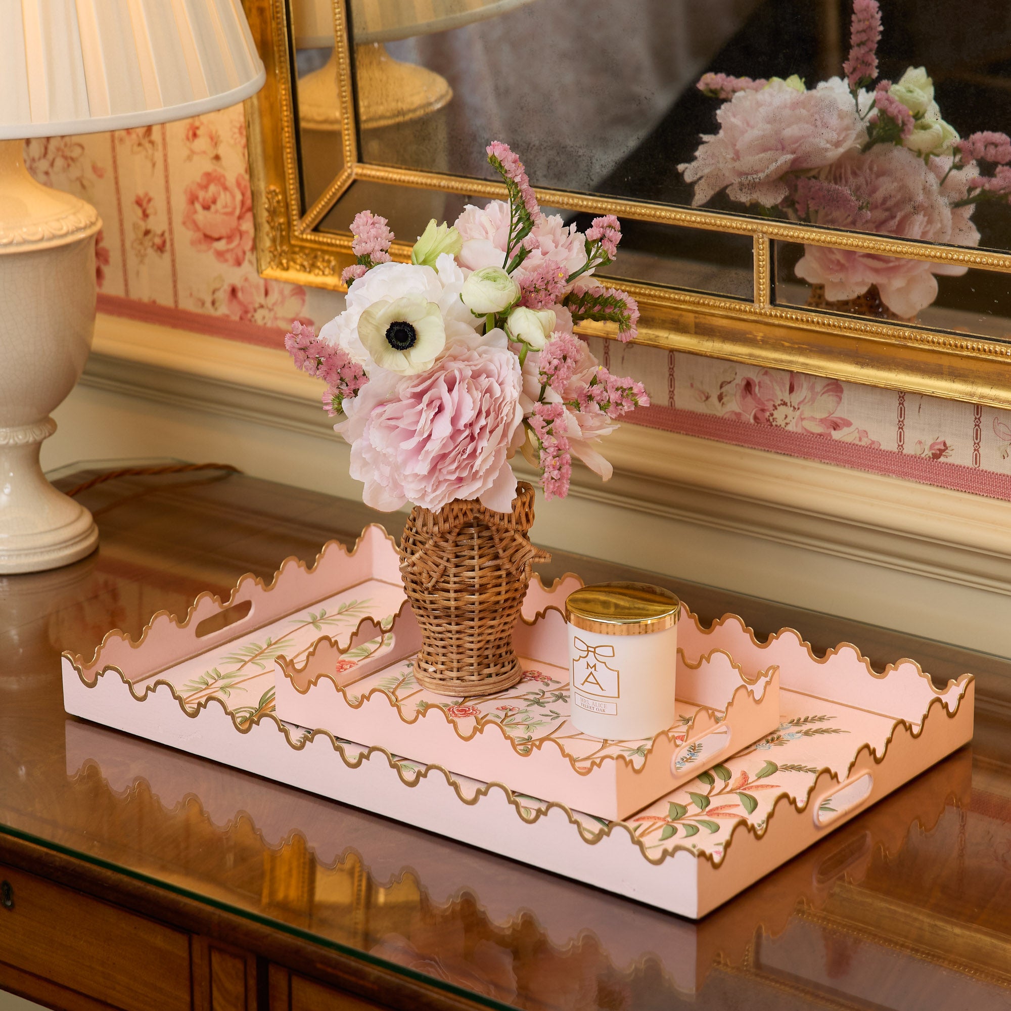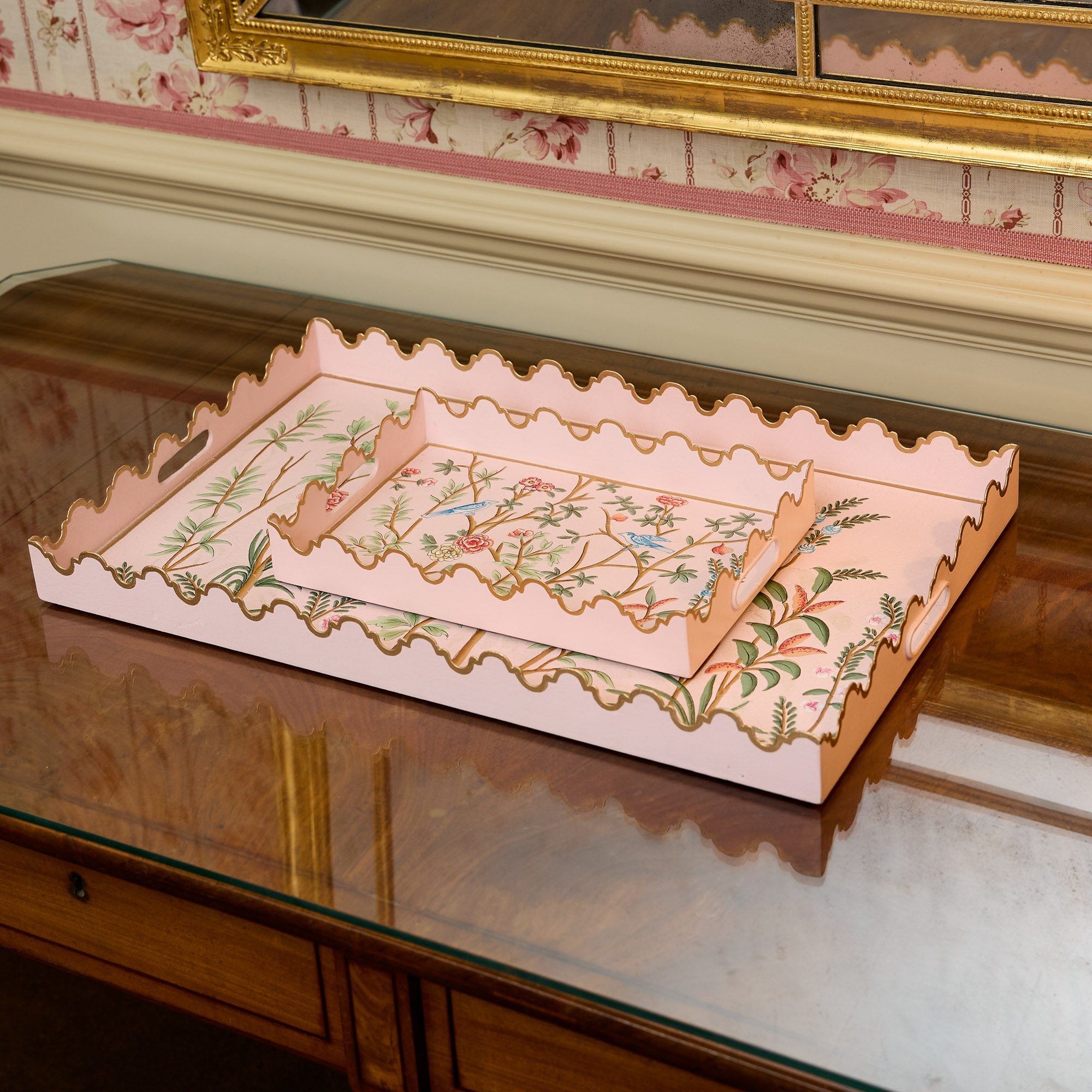 Bring a touch of refinement to your home with our Pink Chinoiserie Tole Tray. Adorned with an intricate chinoiserie design in pastel hues, this stylish tray is a stylish piece perfect for serving your guests drinks or appetisers.