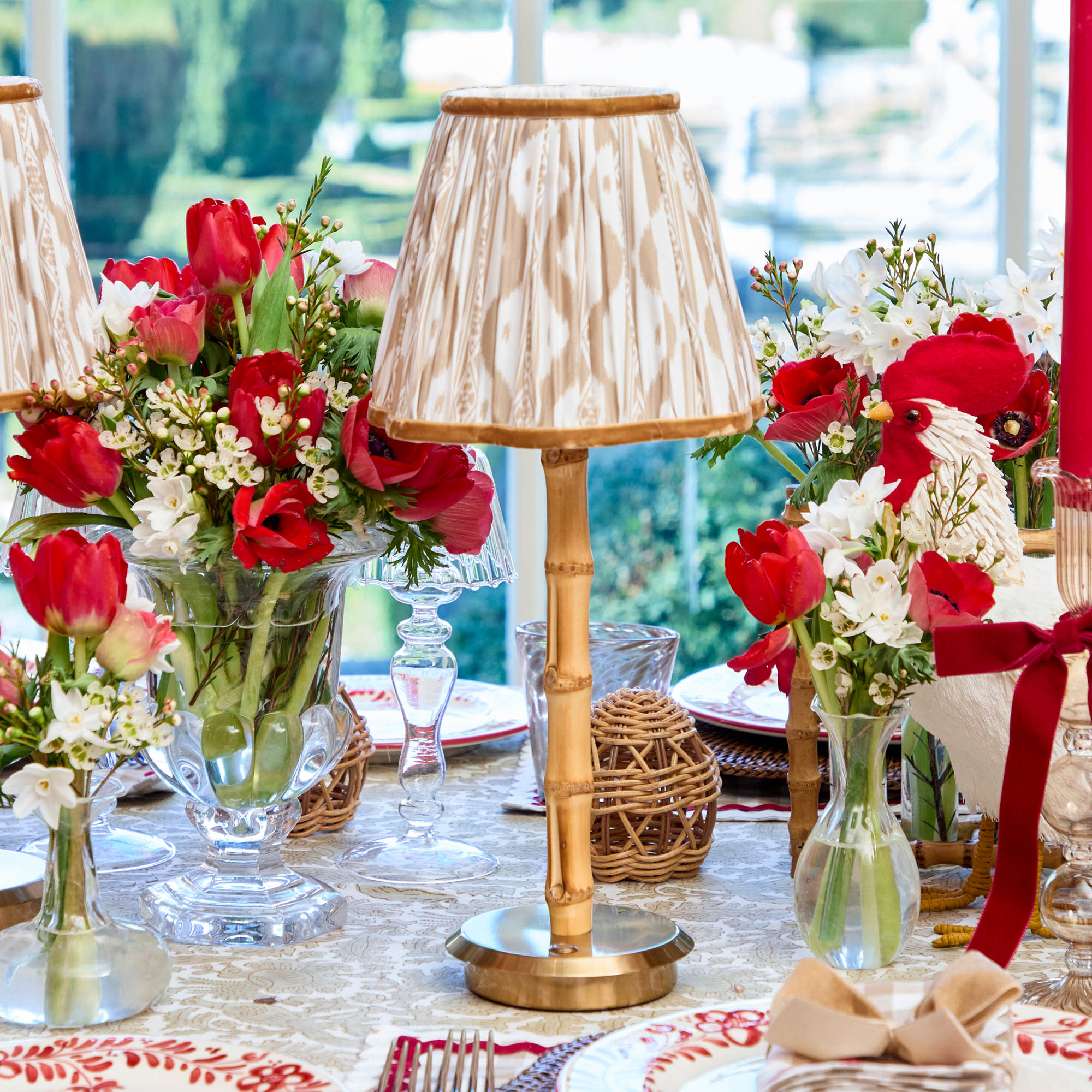 Create a Tablescape that radiates serenity and nature with our Bamboo Rechargeable Lamp with Putty Lampshade. The bamboo lamp is a stunning piece of decor that would be well-suited for centrepieces, while the two neutral lamp shades can be alternated depending on the occasion.