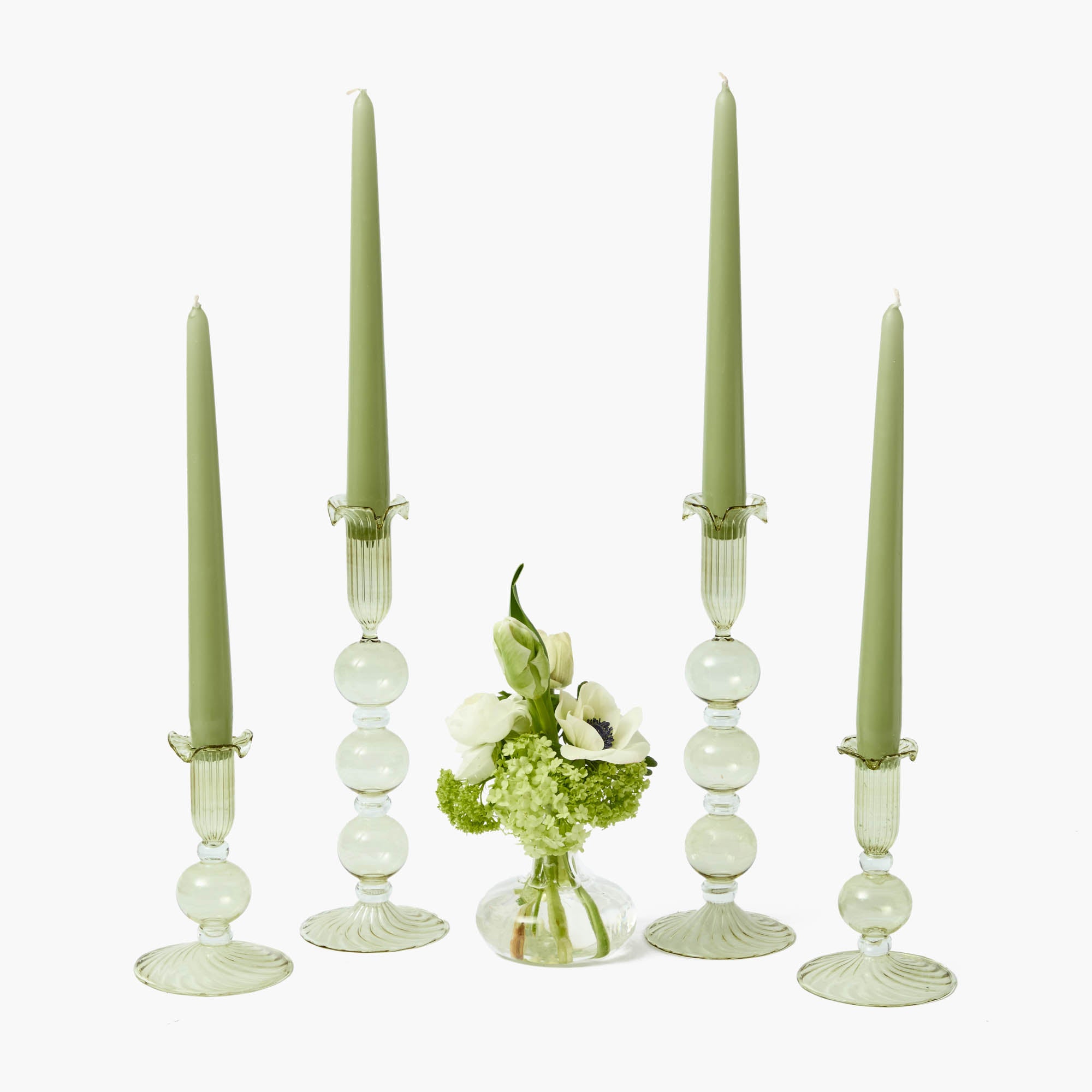Our charming Pair of Small Eden Green Candle Holders will illuminate your home with romantic candlelight.