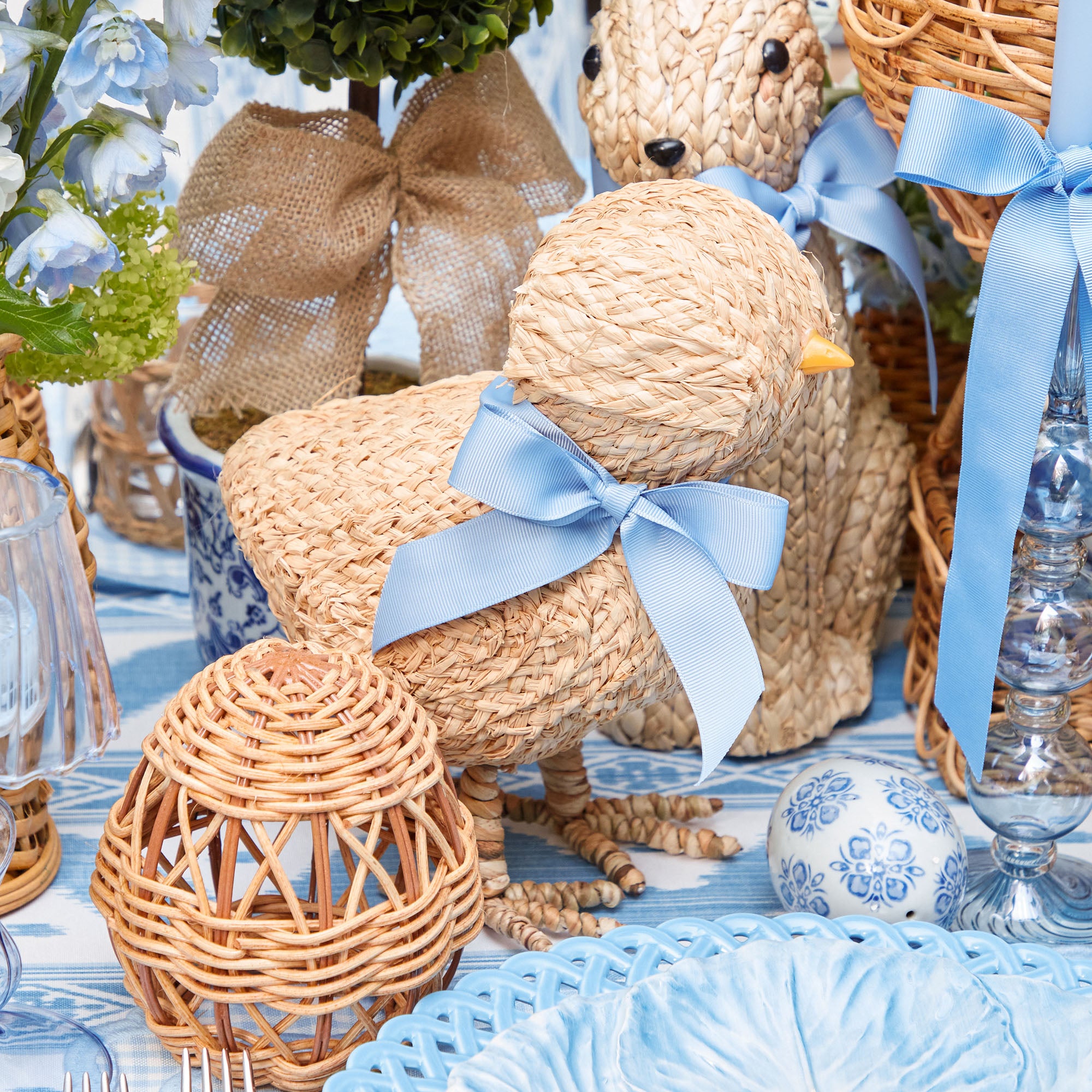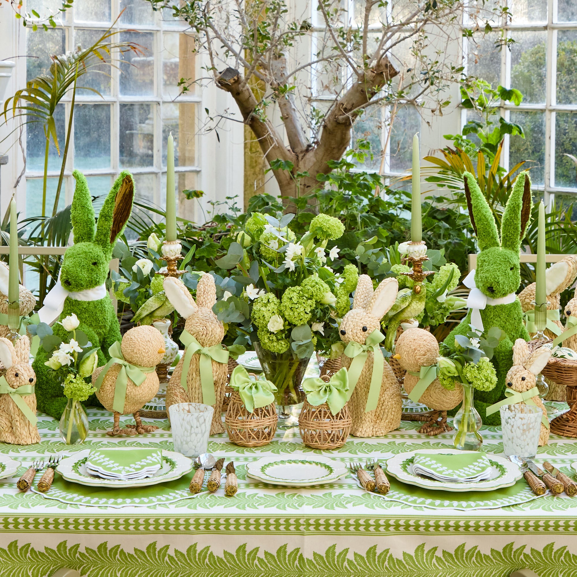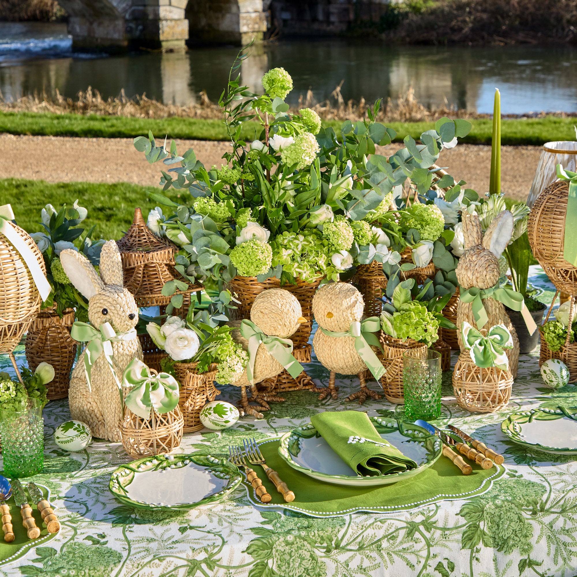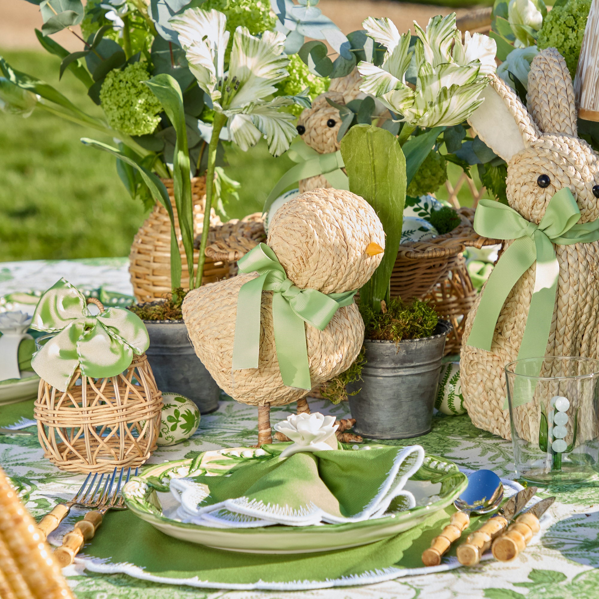 Place our charming Small Raffia Chicks to enhance your Easter Table. Crafted from soft natural raffia and finished with a bow in soft green, they look charming when paired with coordinated linens.