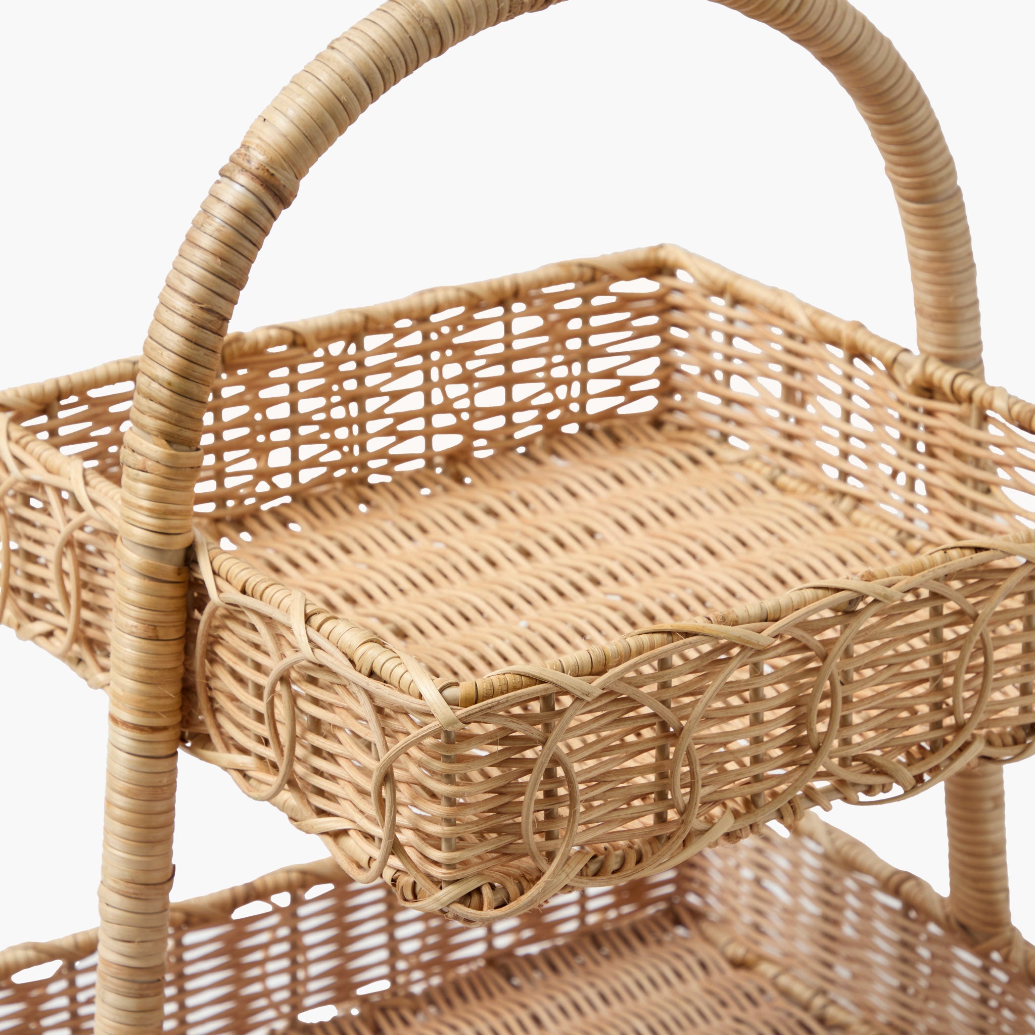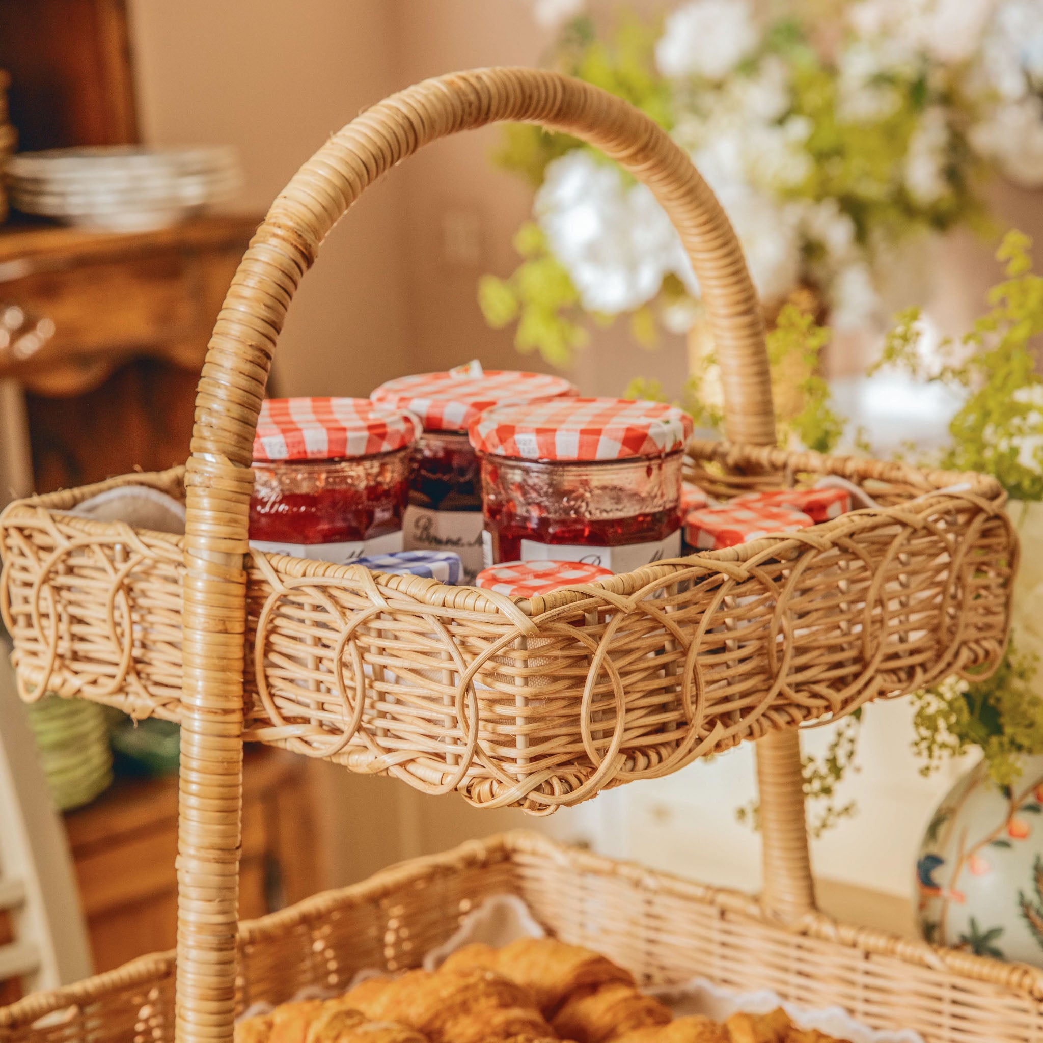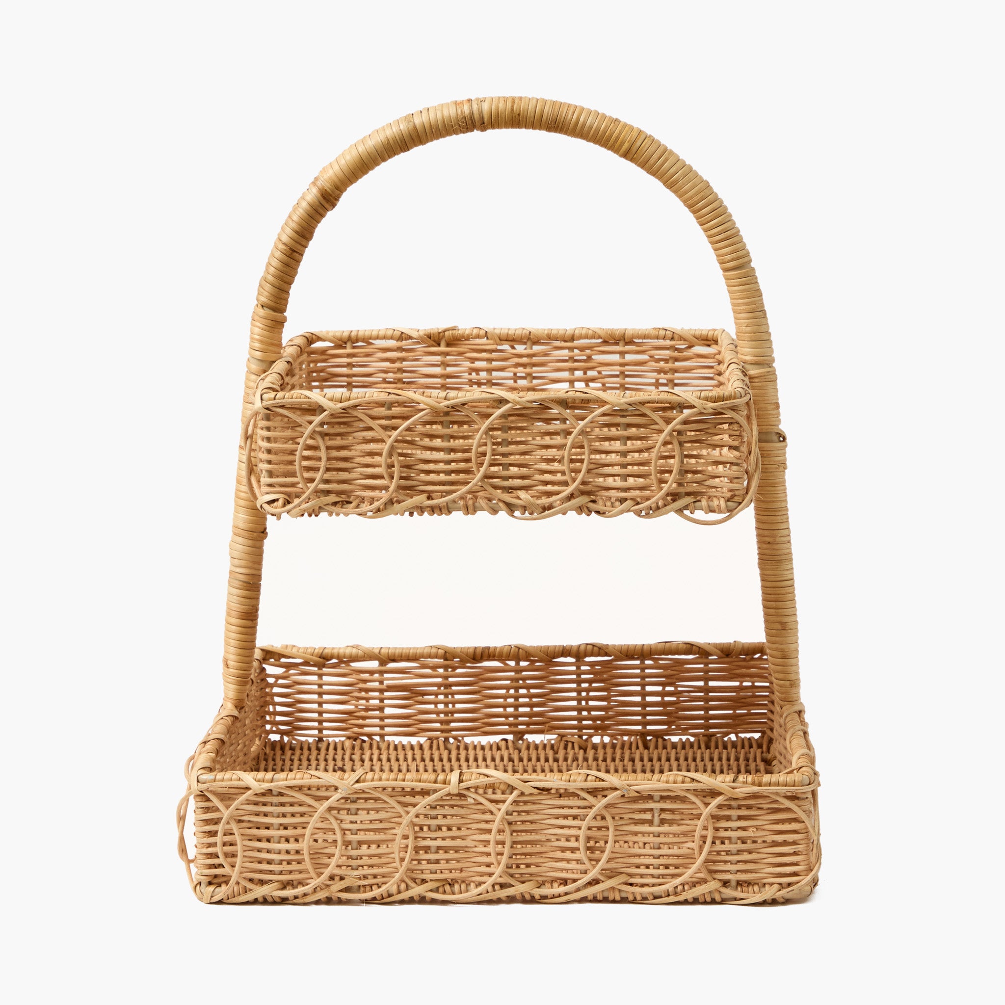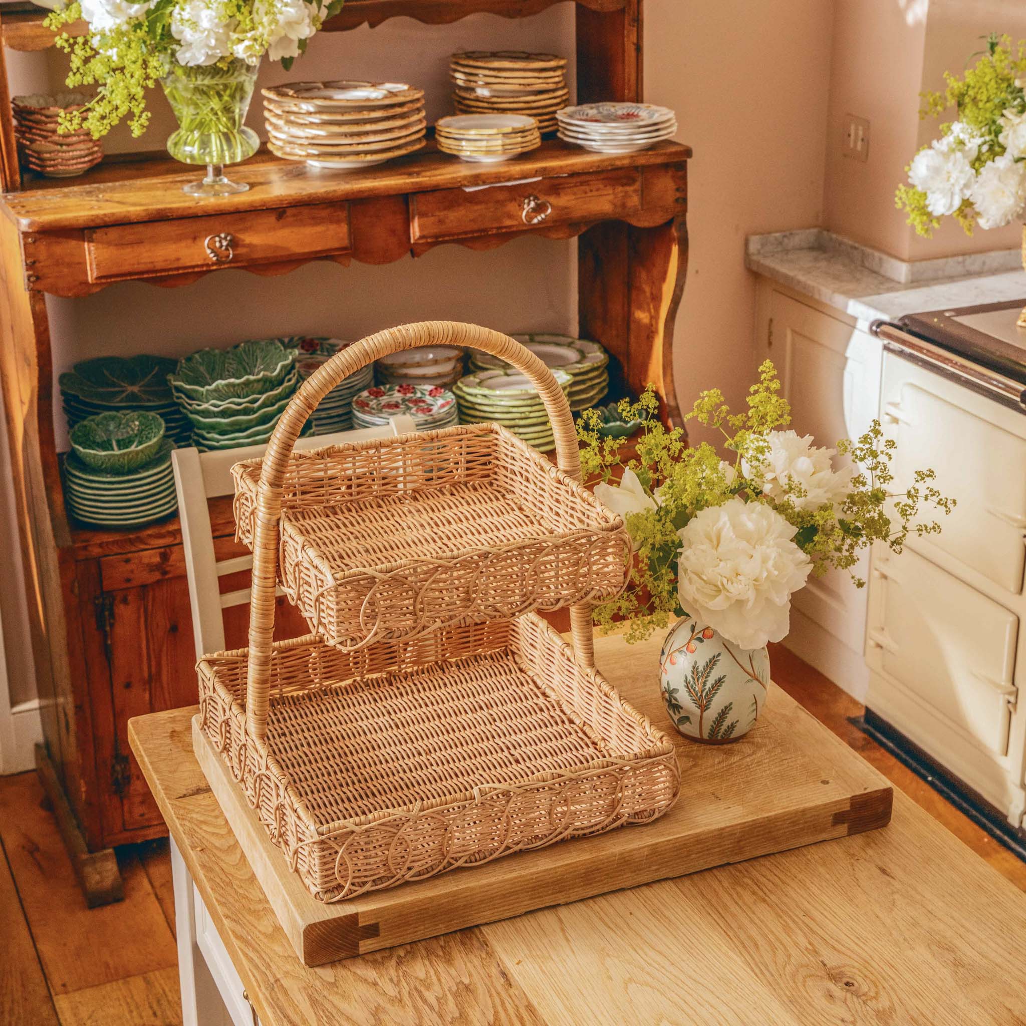 Serve your favourite pastries or cakes this season with our Square Rattan Two Tier Stand. This hand-woven piece features two tiers and a carrying handle, making it perfect for delivering baked goods to your guests.