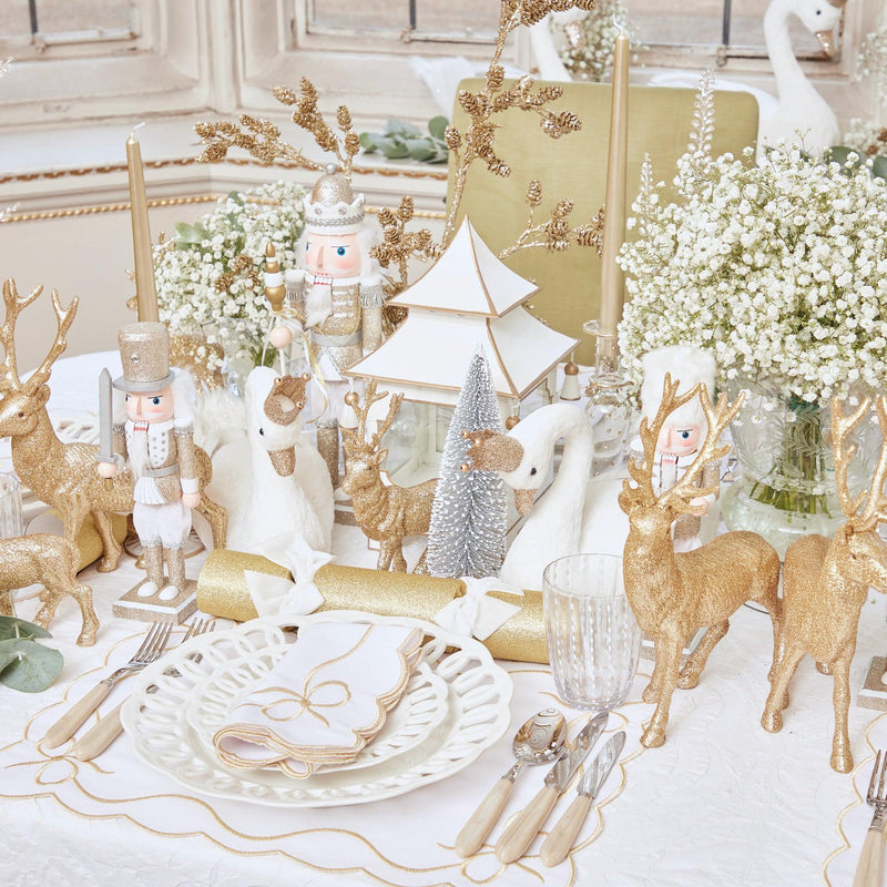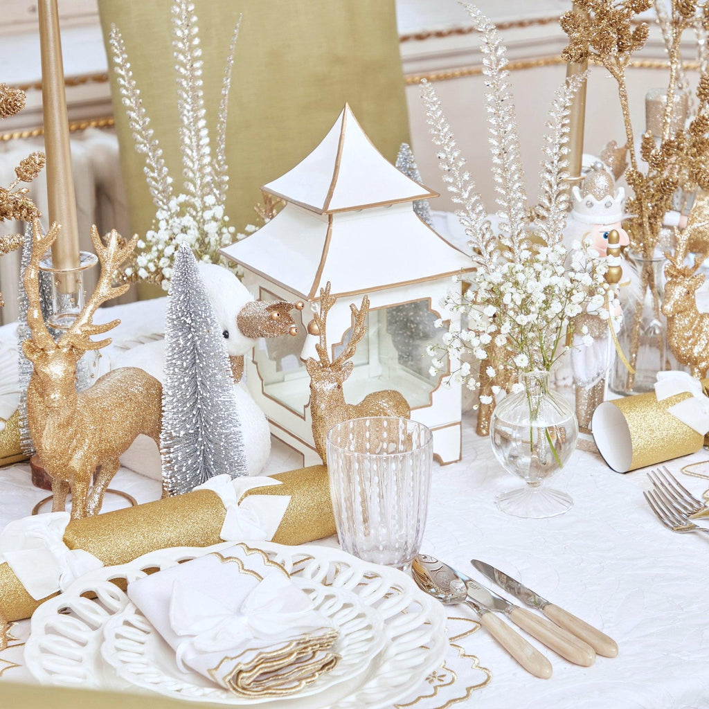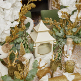 Delight your guests with our Candle Pagoda Lantern in a crisp shade of snow White with gold detailing.